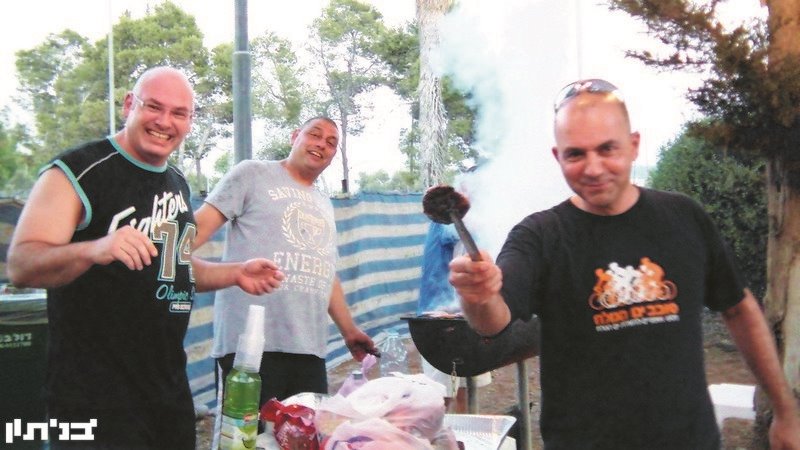 על המנגל תפקדו במלוא המרץ יואב, ערן ואיצקוביץ שדאגו לשפע של בשרים על האש.
