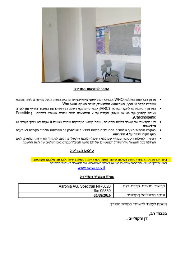 תוצאות הבדיקה קובעות: תוקנו הליקויים בקרינה בבתיה"ס