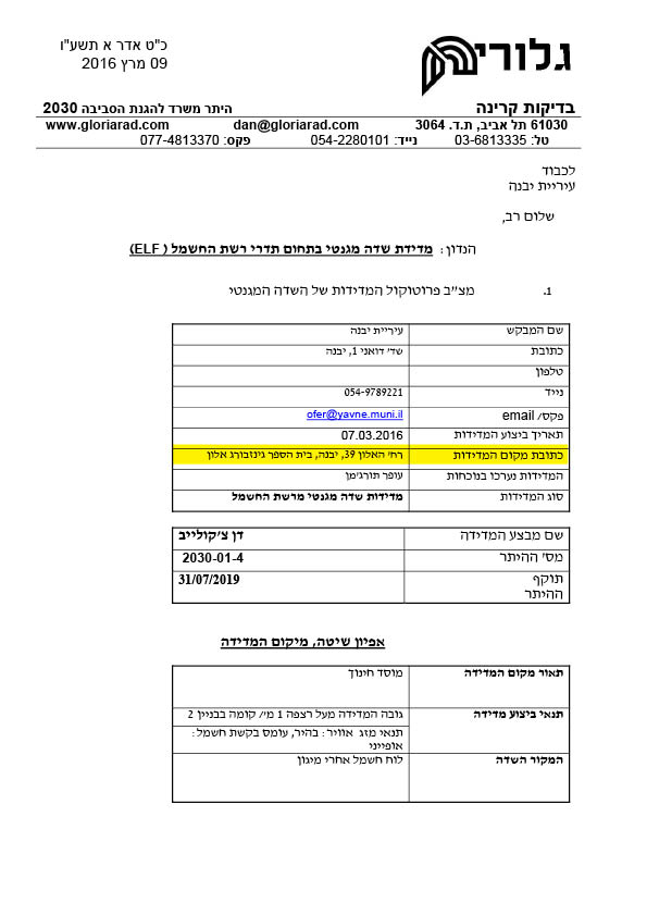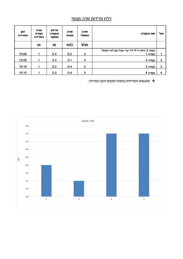 בישיבת המועצה שנערכה הערב הוצגו תוצאות מדידת שדה מגנטי בתחום תדרי רשת החשמל (ELF), שבוצעו בכל בתי הספר בעיר. מהנתונים עולה כי בכל האתרים שנבדקו לא קיימת בעיית חשיפה לקרינה אלקטרו מגנטית. הבדיקות בוצעו על ידי חברת "גלורי בדיקות קרינה", לחברה היתר המשרד להגנת הסביבה 2030.