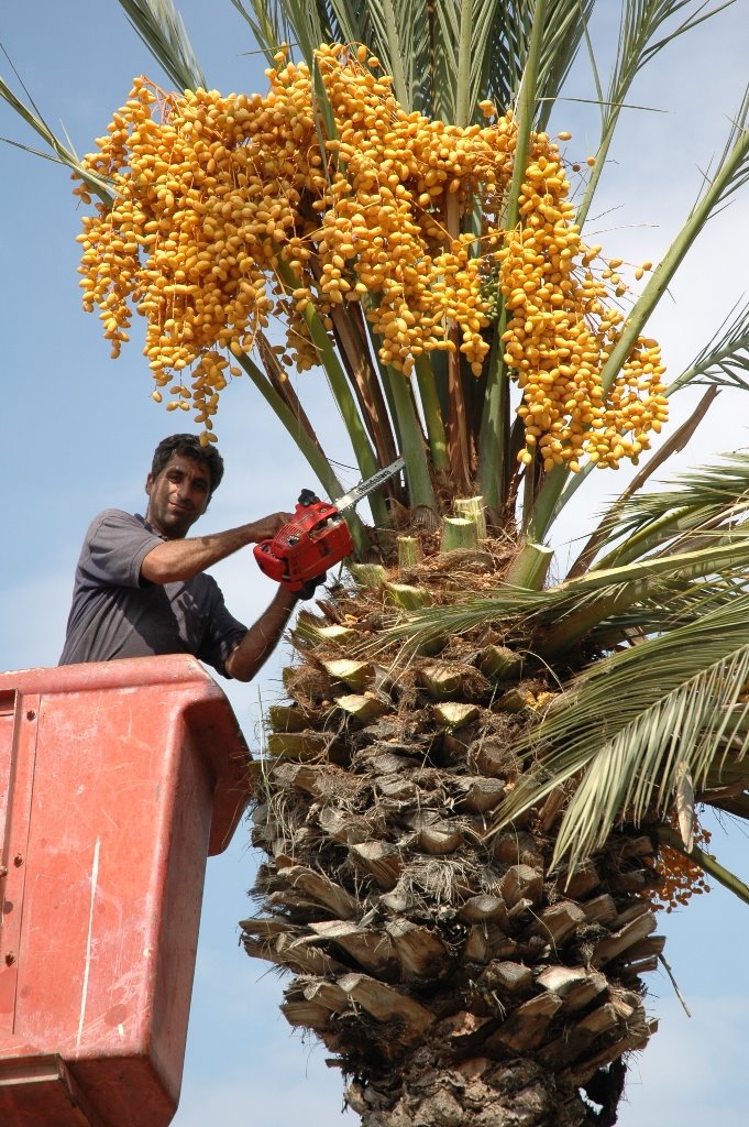 גיזום מרוכז של ענפי עצי התמר וכפות התמרים