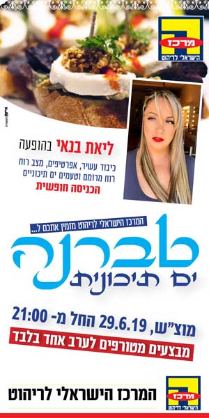 קניון הרהיטים הגדול במדינה - המרכז הישראלי לריהוט באשדוד מציג את "חגיגה ים תיכונית" - הופעה של ליאת בנאי כיבוד עשיר אפרטיפים וטעמים ים תיוכניים לצד מבצעים מטורפים לערב אחד. מוצ"ש 29.6.19 החל מהשעה 21:00 - הכניסה חופשית