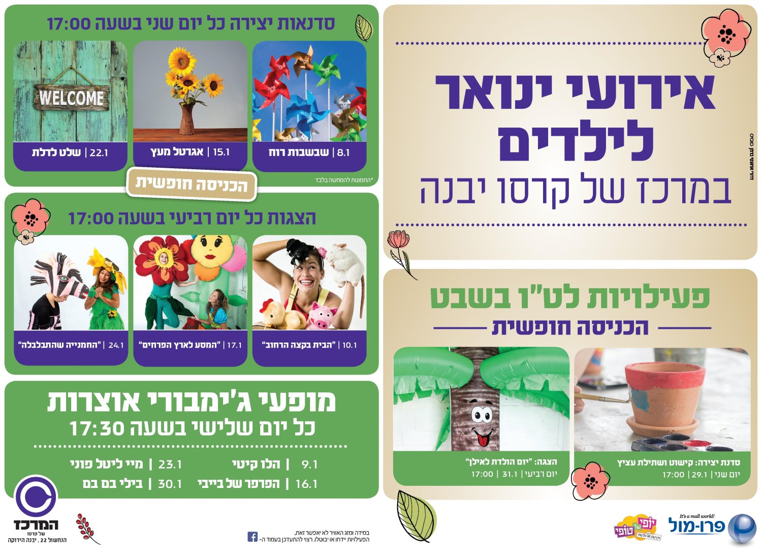 אירועי ינואר לילדים- במרכז של קרסו ביבנה- אל תחמיצו!!