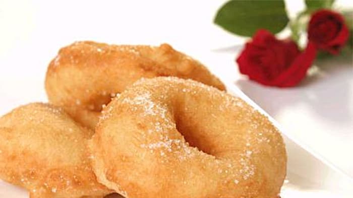 • 2. מחממים שמן לטיגון. בידיים רטובות עושים עיגולים עם חור ומכניסים לשמן חם עד שמזהיב. טובלים בסוכר.