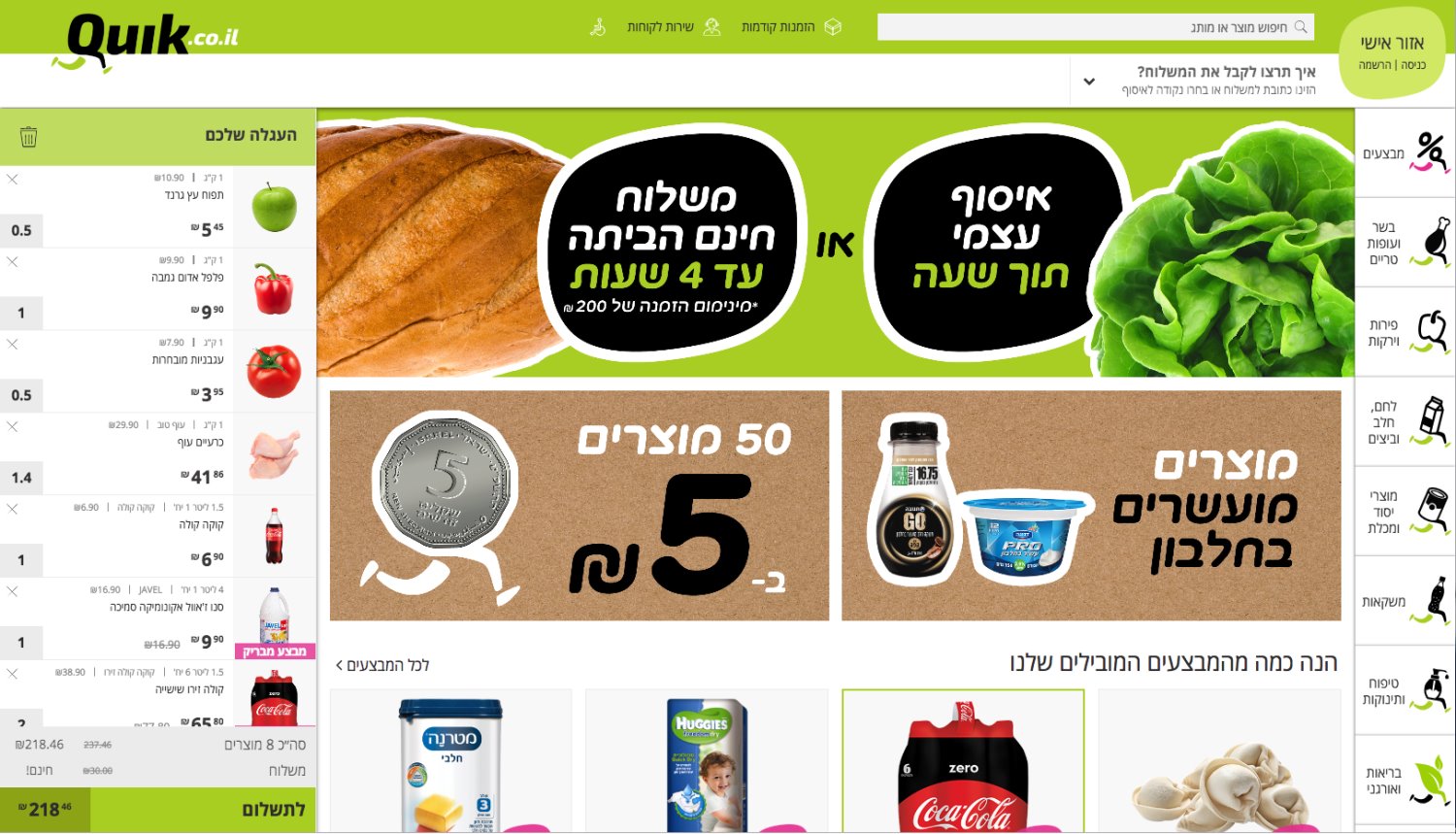 QUIK סופרמרקט אונליין הגיע ליבנה עם שירות משלוחים עד 4 שעות וללא עלות