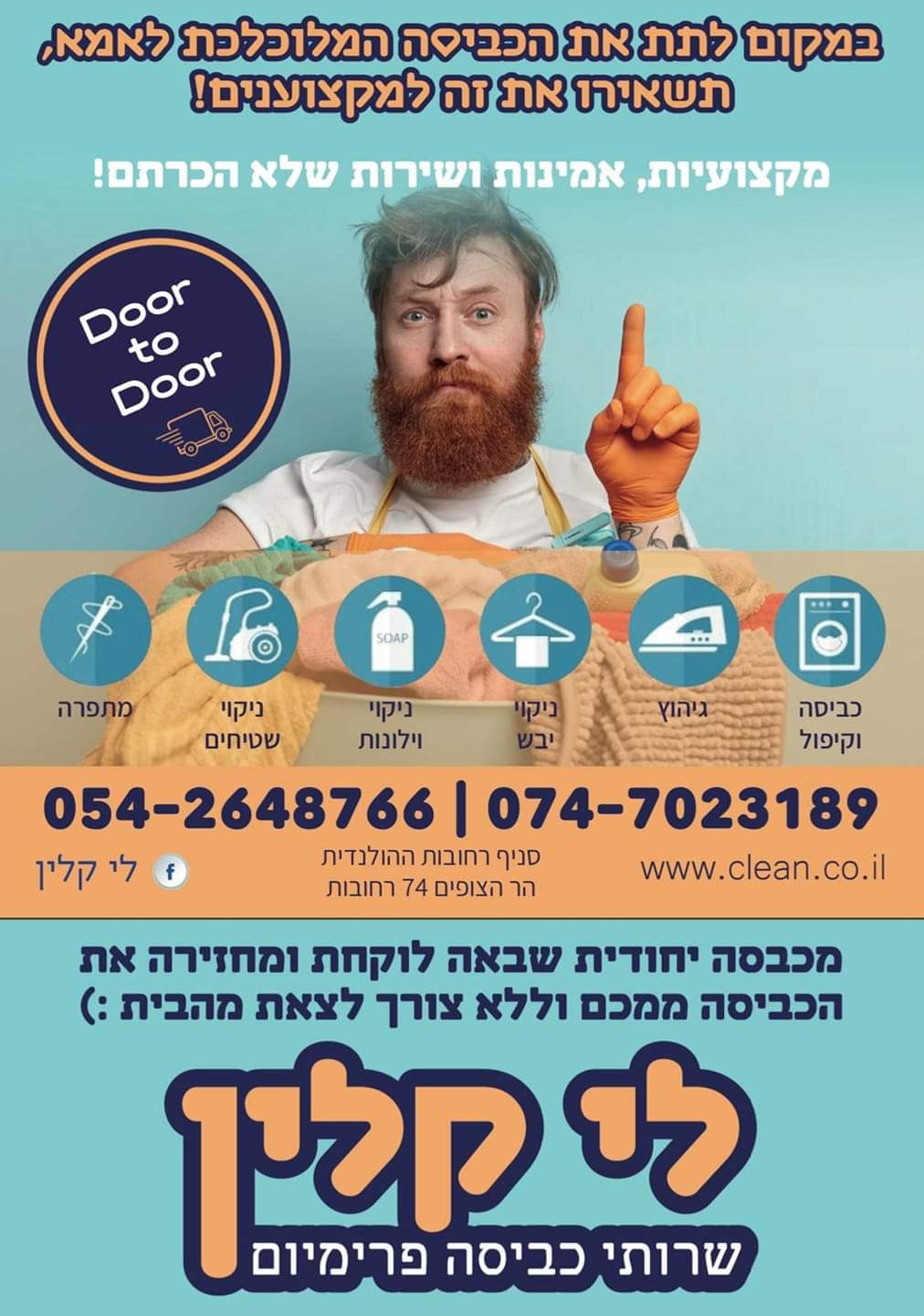 לי קליין שירותי כביסה פרימיום גם בעיר יבנה בבעלות של יעקב סממה.