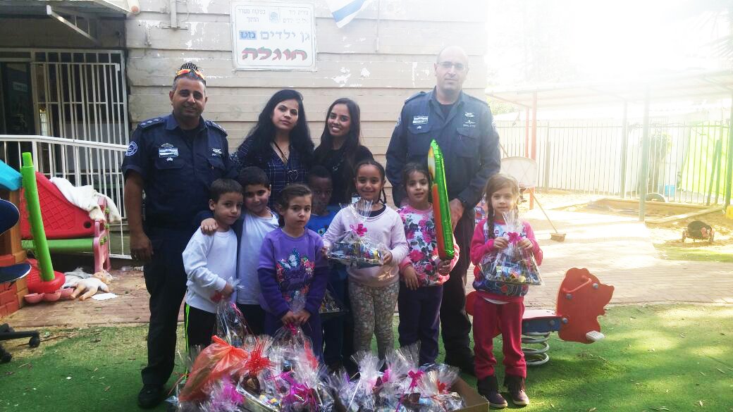 תלמידי כיתה ד ביחידני במפגש עם שוטרי יבנה בפרויקט מיוחד. התלמידים כיבדו אותם בסופגניות לחג