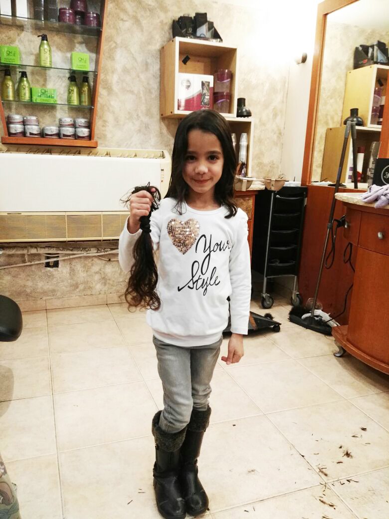 מעיין אליאס תרמה את שערה במספרת קליפס אצל הספר יוסי הנדיב
