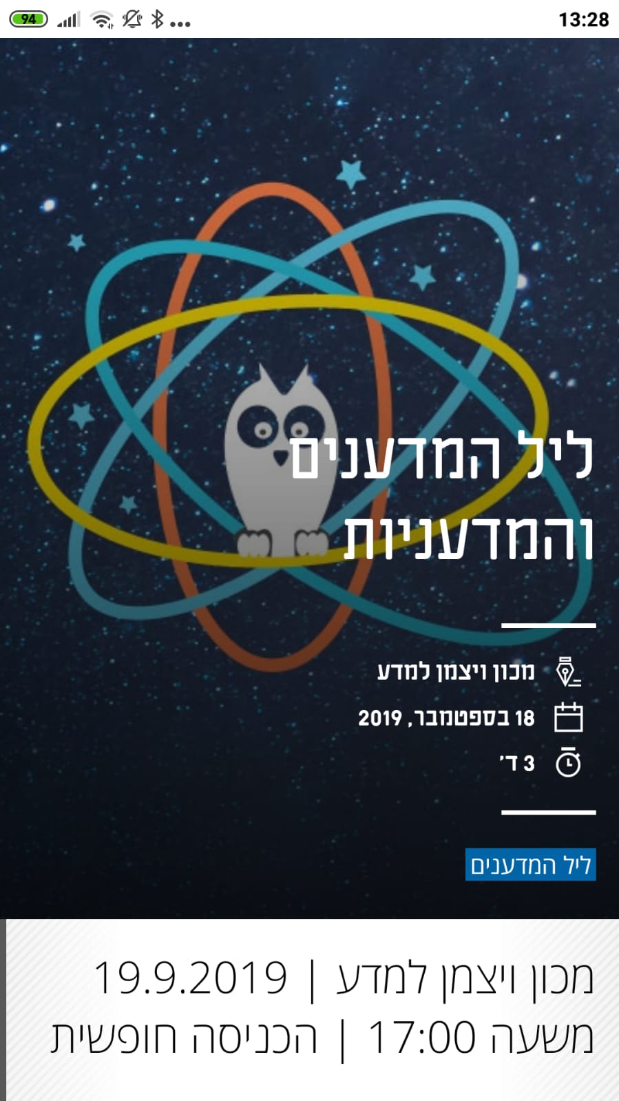 מחר - ליל המדענים והמדעניות האירופי בישראל 2019