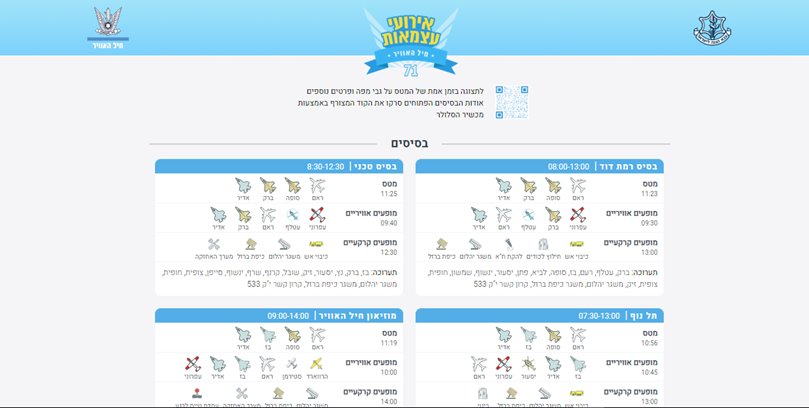 השנה התווספו אפשרויות חדשות כחלק משיפור המערכת משנה שעברה, ויהיה ניתן לקבל מידע עבור כל אחד מבסיסי חיל האוויר הפתוחים ביום העצמאות: שעות פתיחה, מופעים אוויריים וקרקעיים, תערוכות וזמני מעבר (זמן אמת) של מעבר המטוסים מעל הבסיסים וכן קישור Waze להגעה לבסיס.