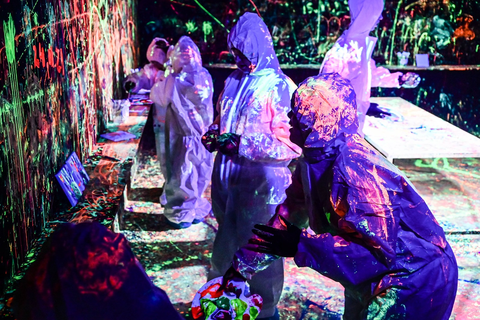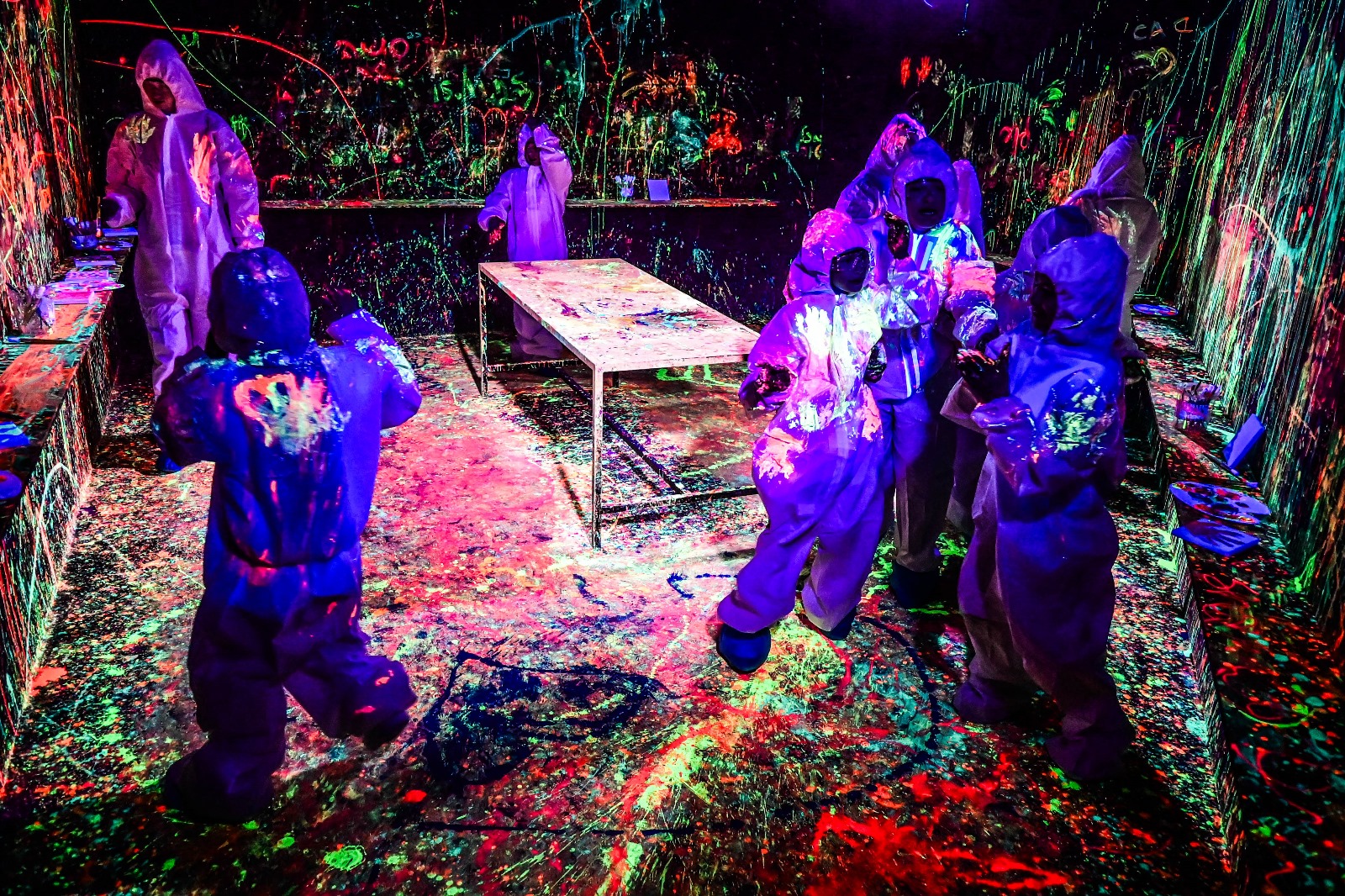 חדר הצבע (Splatter Room) לוקח את חוויית היצירה לקצה. החדר חשוך ומואר בתאורת אולטרה סגול, המשתתפים לובשים סרבלים לבנים זוהרים ומקבלים צבעי אולטרה, קנבס ומכחולים. אחרי שכל אחד מצייר את "העולם שהוא היה רוצה לחיות בו" מתחילה "מסיבת שיגעון" מוזיקה, צבעים שמתעופפים באוויר, כתמי צבע על הקירות, הרצפה והסרבלים, והרבה צחוק. את הקנבס האישי לוקחים הביתה למזכרת. "זה שילוב של יצירה, צילום וצחוק בלתי פוסק", מספרים במקום. "יוצאים משם צבעוניים מבחוץ ומאושרים מבפנים".