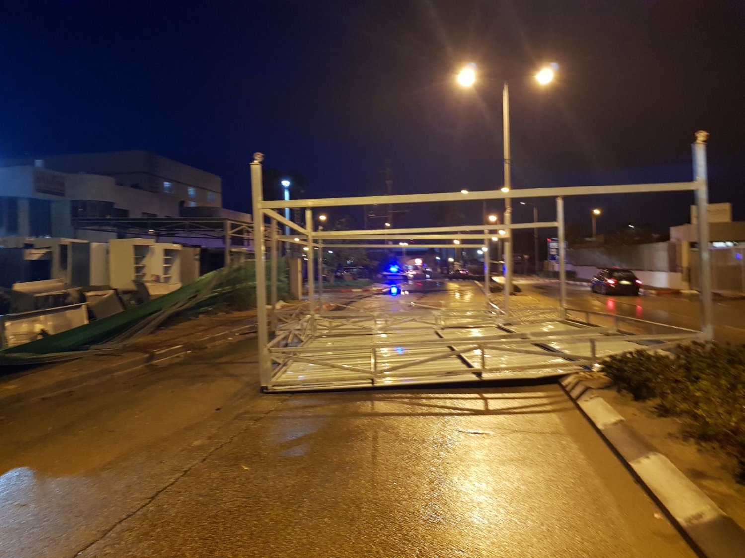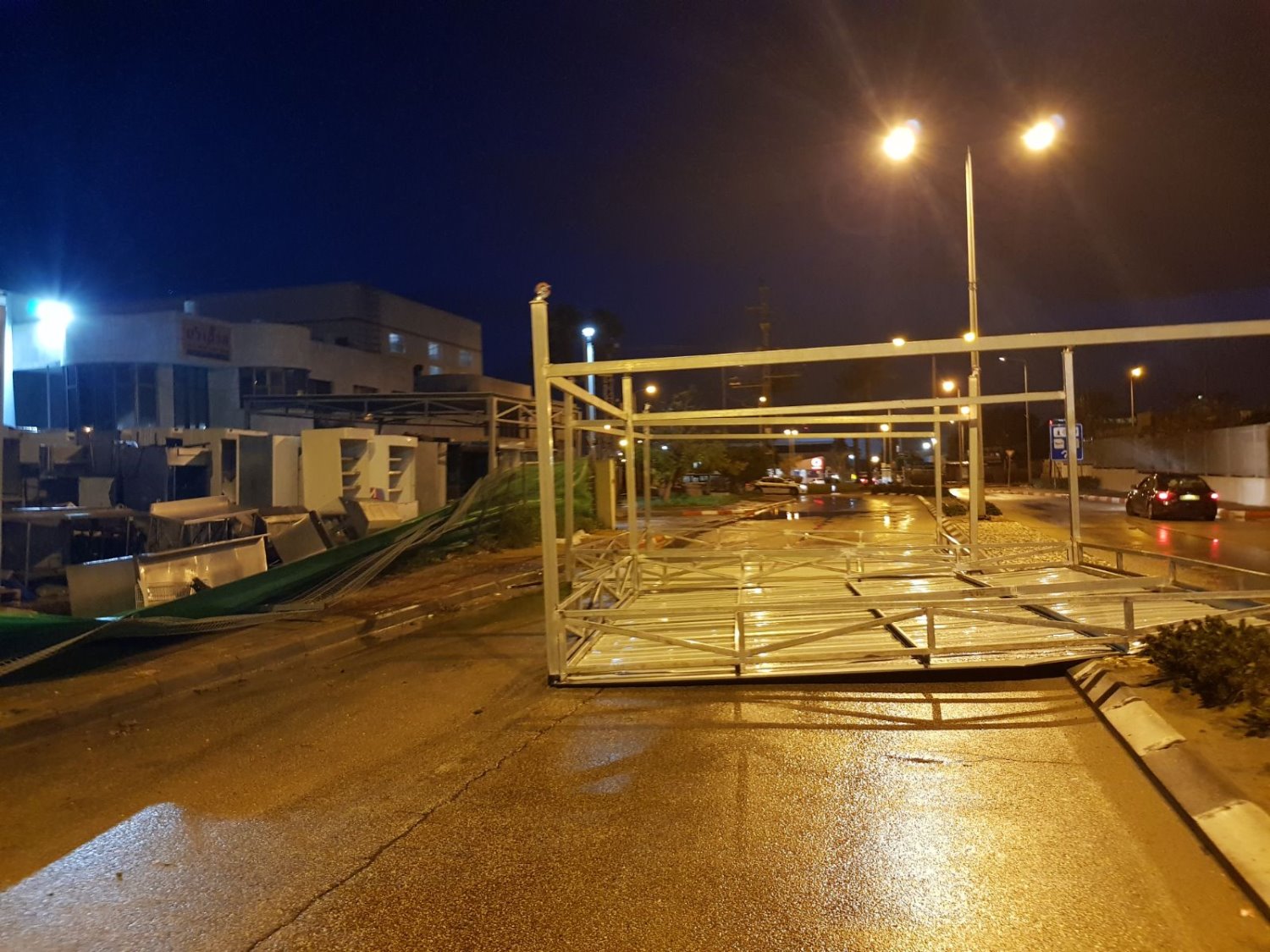 במהלך הלילה, בזכות הרוחות העזות שנשבו באזור יבנה, נעקרה סככת אלומיניום מחצר אחד המפעלים ברחוב שידלובסקי, ועפה לכביש שנחסם לתנועה. במזל גדול לא פגעה הסככה ברכב שנסע בסמוך.