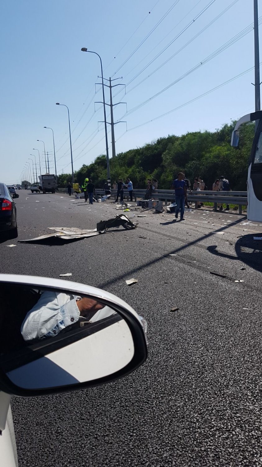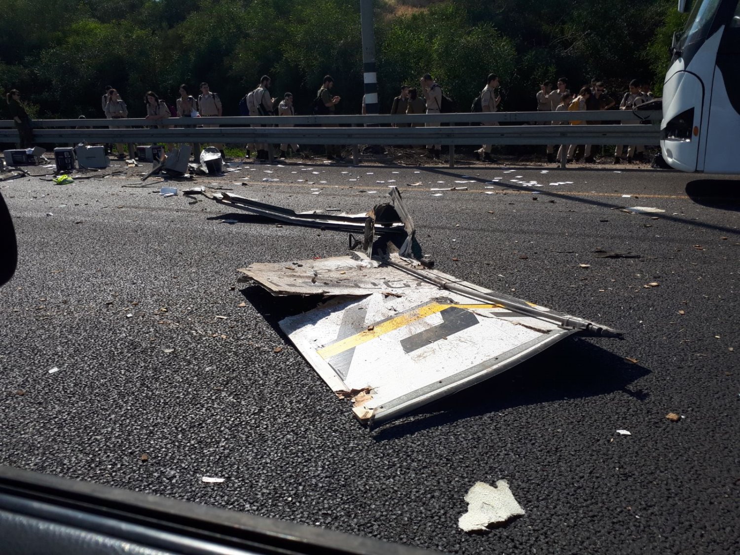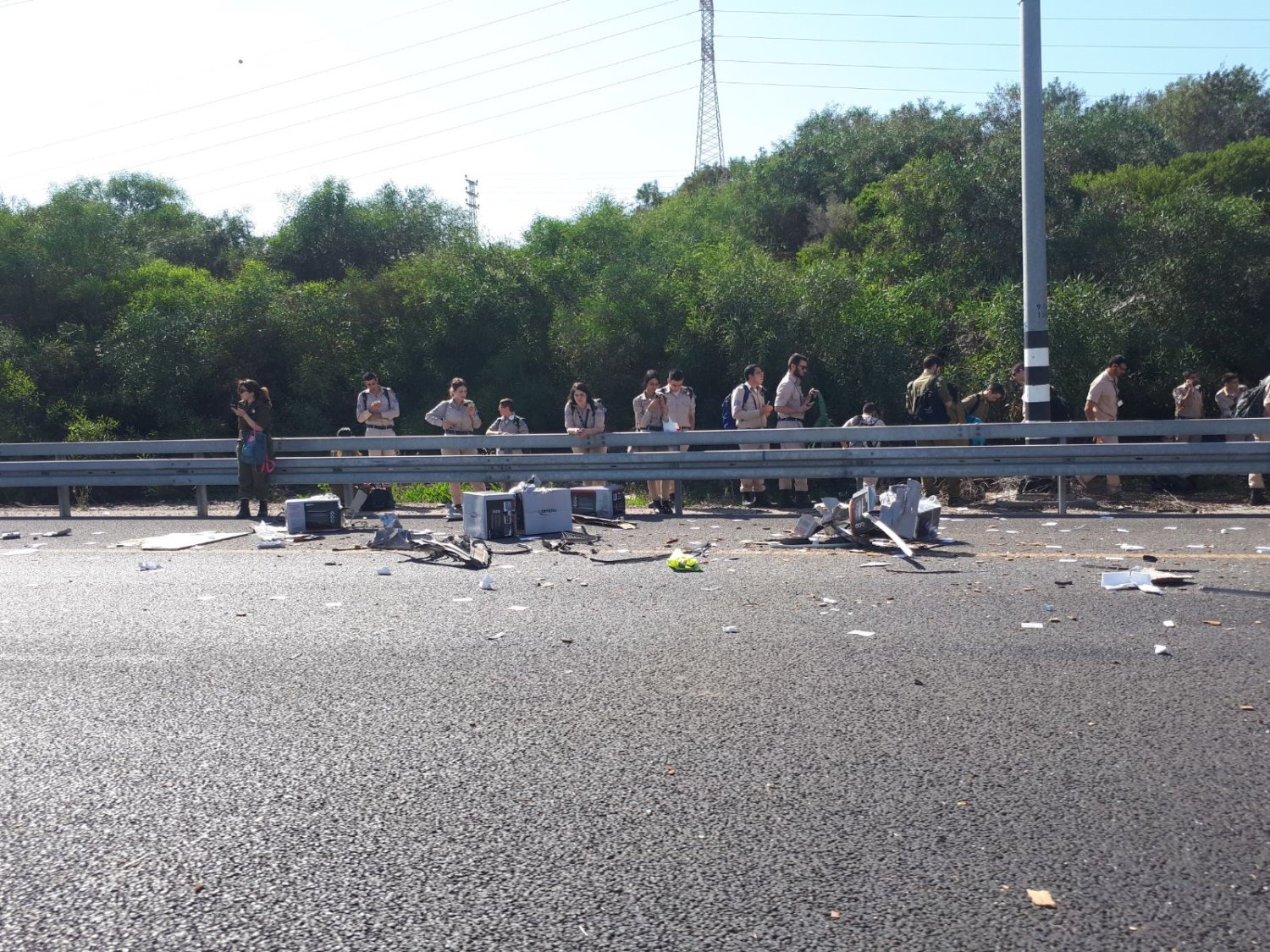 לפני זמן קצר התקבל דיווח אודות תאונת דרכים במעורבות של משאית עם אוטובוס שהסיע חיילי צה"ל. מעוצמת הפגיעה נגרם נזק לשני כלי הרכב, ואף מספר מוצרי חשמל שהיו במשאית התפזרו על הכביש. לא ידוע על נפגעים. במקום נוצרים עומסי תנועה.