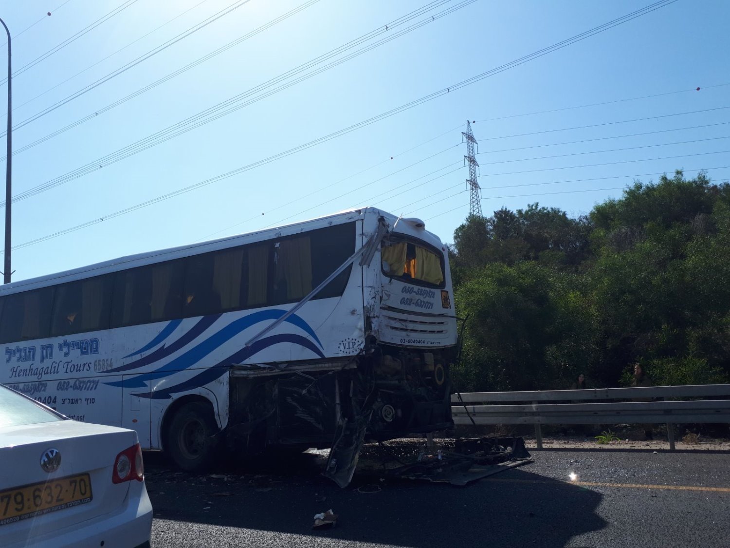 אוטובוס שהסיע חיילים התנגש עם משאית מתחת לגשר יבנה