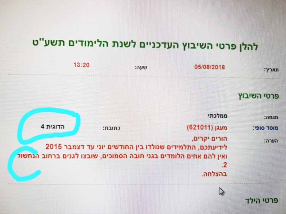 "לא נשלחו מכתבים, אף אחד מההורים לא קיבל שום מכתב ואין לנו בעיה בדואר, עובדה שאת תשלומי הארנונה לעירייה כולם מקבלים יופי. זאת הייתה תכנית שהם רקמו מראש, להוסיף את זה כהערה, שאולי לא ממש ישימו אליה לב. הם חשבו שזה יעבור מתחת לרדאר, אבל חדי העין הבחינו. שלושה חודשים אנחנו מתריעים שוב ושוב שקצב בניית הגנים אינו מספק ושהם לא יהיו מוכנים ב-1 בספטמבר. שלושה חודשים מתעלמים ואומרים לנו 'יהיה בסדר'. אז הם חיכו רגע שלפני היציאה לפגרה, שיגרו את ההודעה הזאת וזהו, כולם נעלמו. החליטו על דעת עצמם לקחת ילדים קטנים בני 3, שזו הפעם הראשונה שבה הם יוצאים מהמסגרת העוטפת של הפעוטונים ולשים אותם באיזשהו מבנה זמני. אף אחד לא אומר לנו מה זה אומר 'זמני' וכמה זמן זה אמור לקחת".