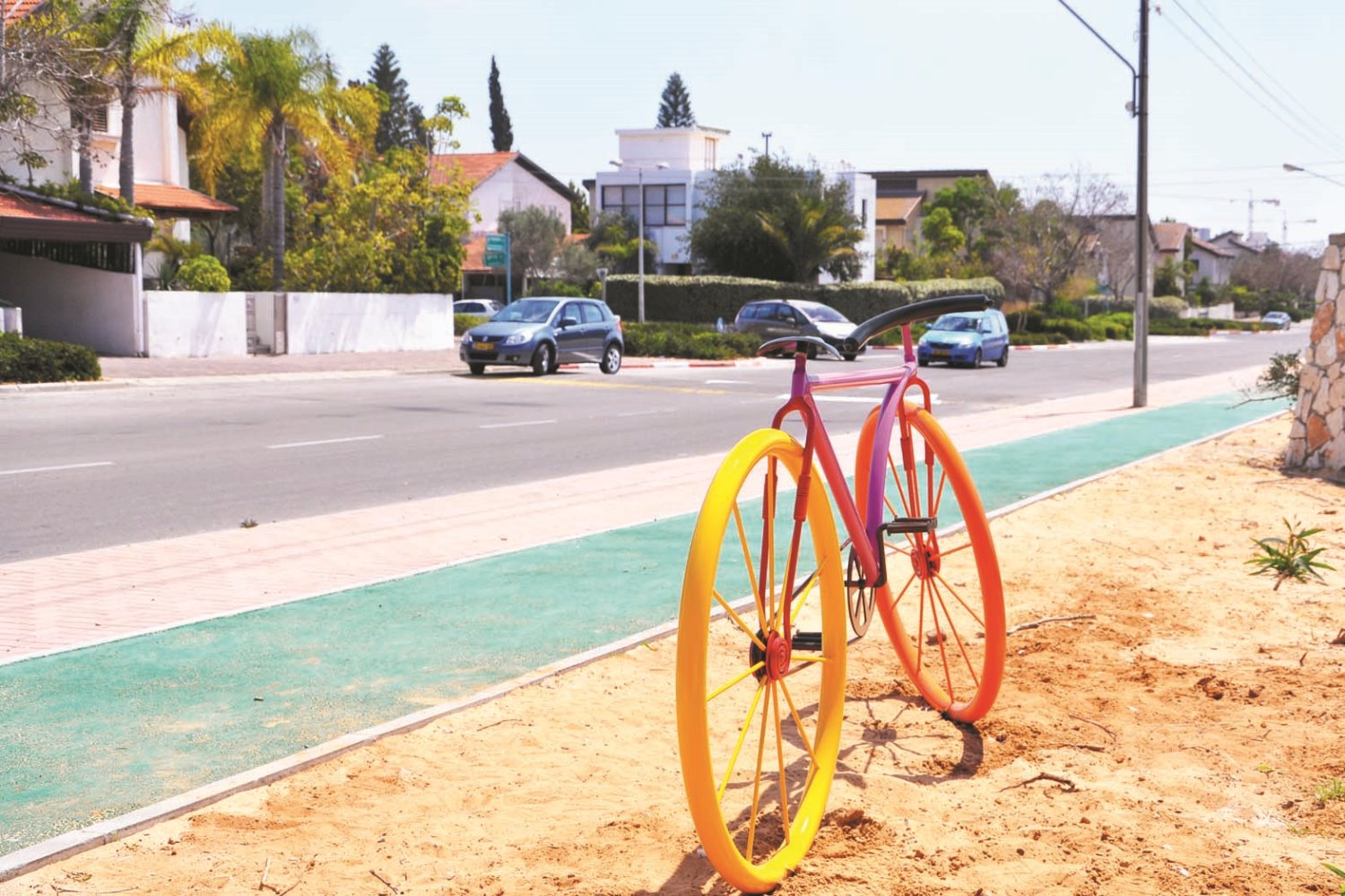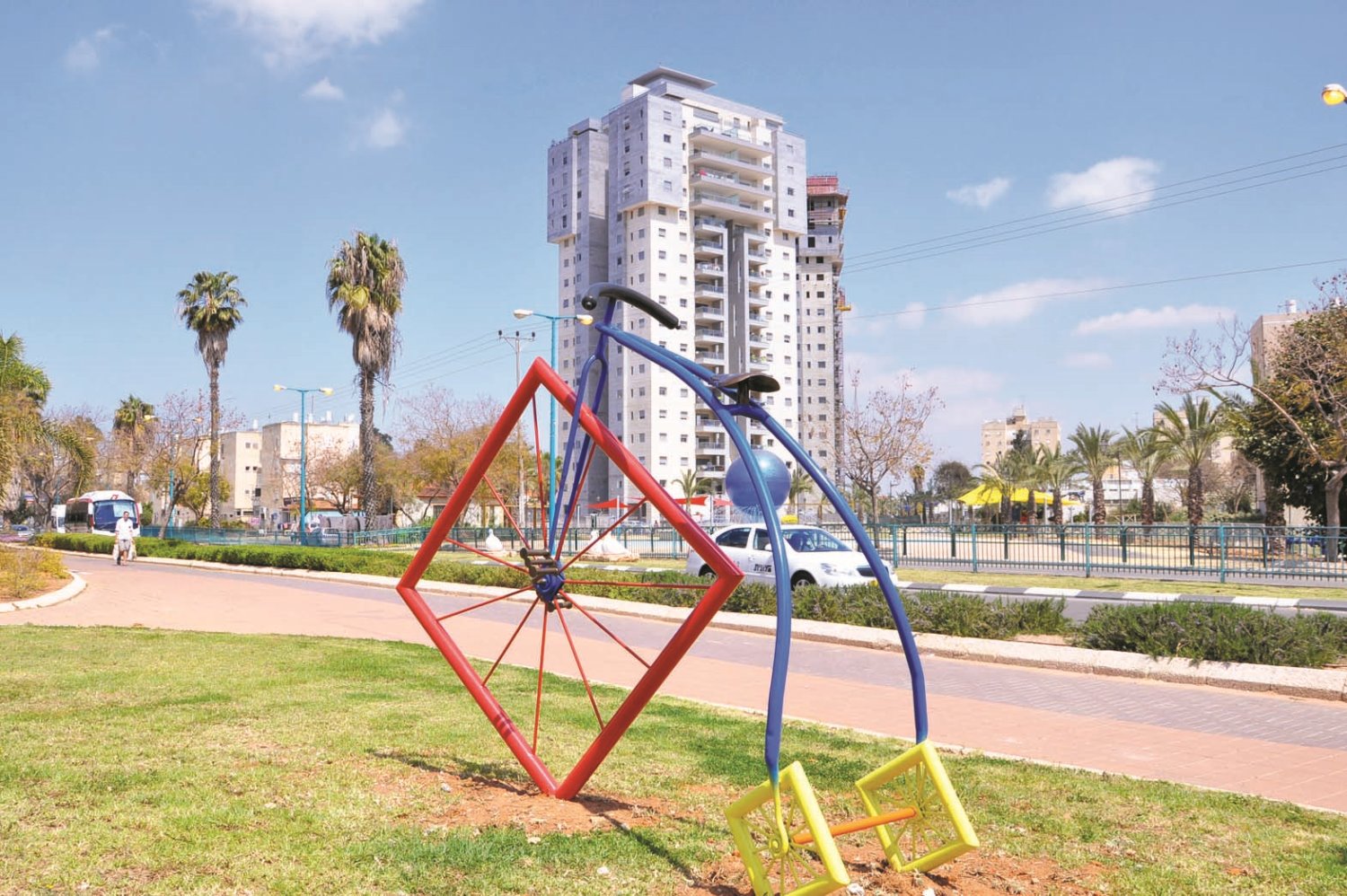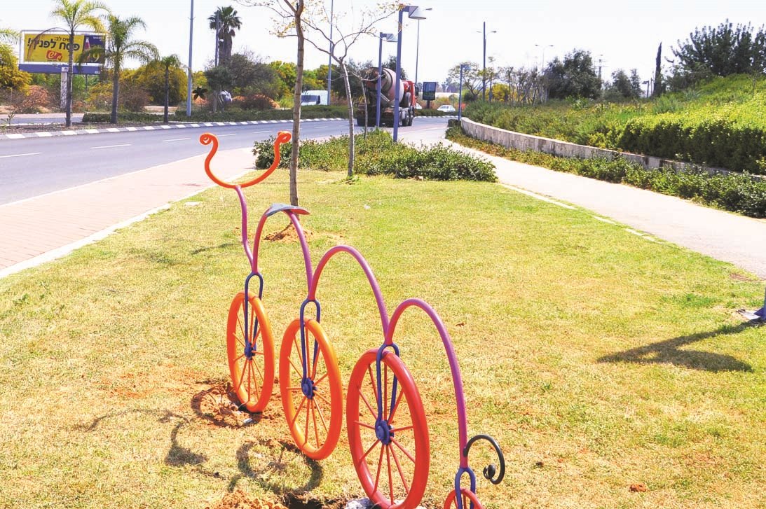 15 פסלי אופניים מרשימים הוצבו לאורכם של שבילי האופניים ביבנה להנאת רוכבי האופניים בעיר