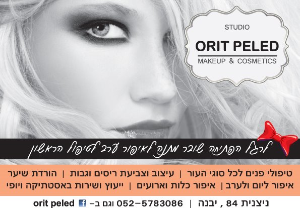 השבוע נפתח מכון יופי חדש בעיר הנקרא "סטודיו אורית פלד" ברחוב ניצנית 84 יבנה.