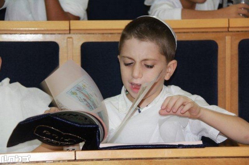 כשהגיעו לבית הכנסת, התלמידים קיבלו בטקס מרגש את החומש הראשון, חומש בראשית. הילדים התקבלו במטח סוכריות צבעוניות, והמאסטרו אייל דרכמן ליווה בגיטרה את שירת הילדים. הטקס הגיע לשיאו כאשר נפתח ארון הקודש. הילדים אשר התגודדו סביבו קראו קריאת התפעלות לנוכח ספרי התורה המקושטים בהידור רב.