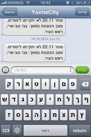 עיריית יבנה מפעילה שירות חדש של שליחת הודעת sms (מסרון) לתושבים
