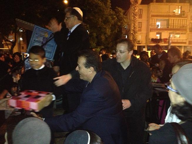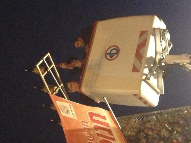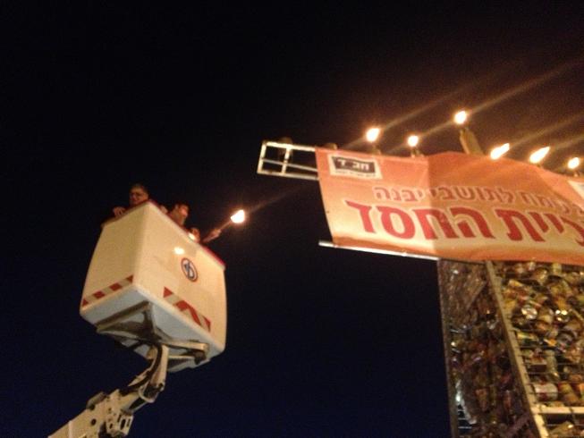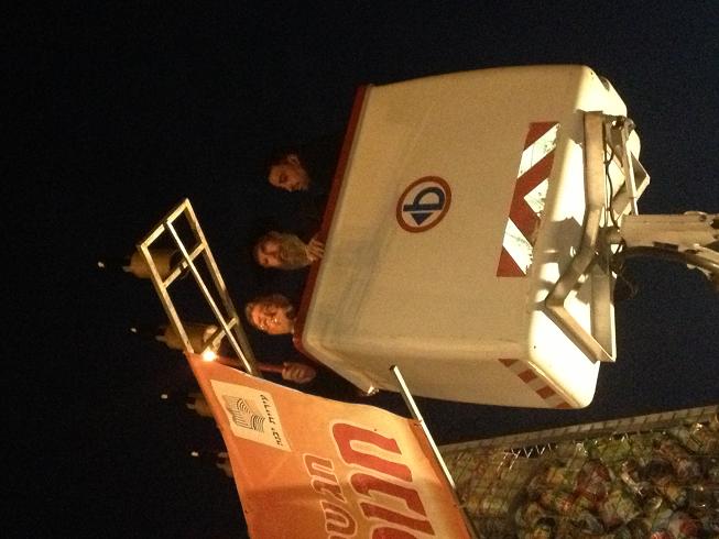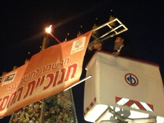 ראש עיריית יבנה, צבי גוב-ארי עלה באמצעות מנוף אל ראש החנוכייה והתכבד בהדלקת הנרות.