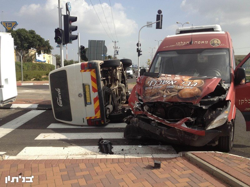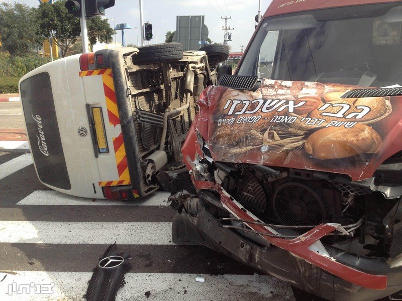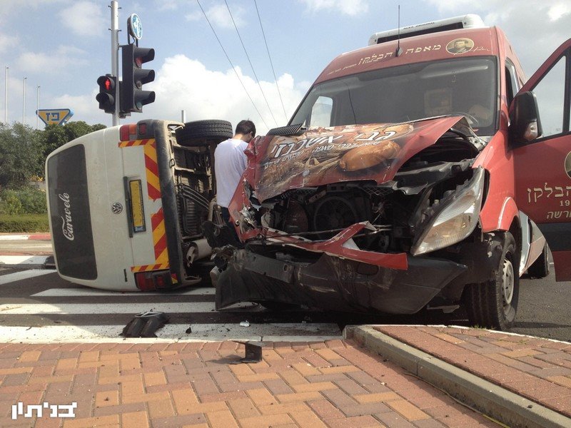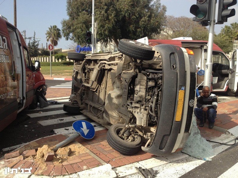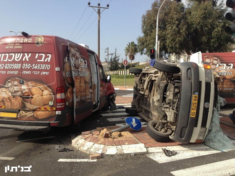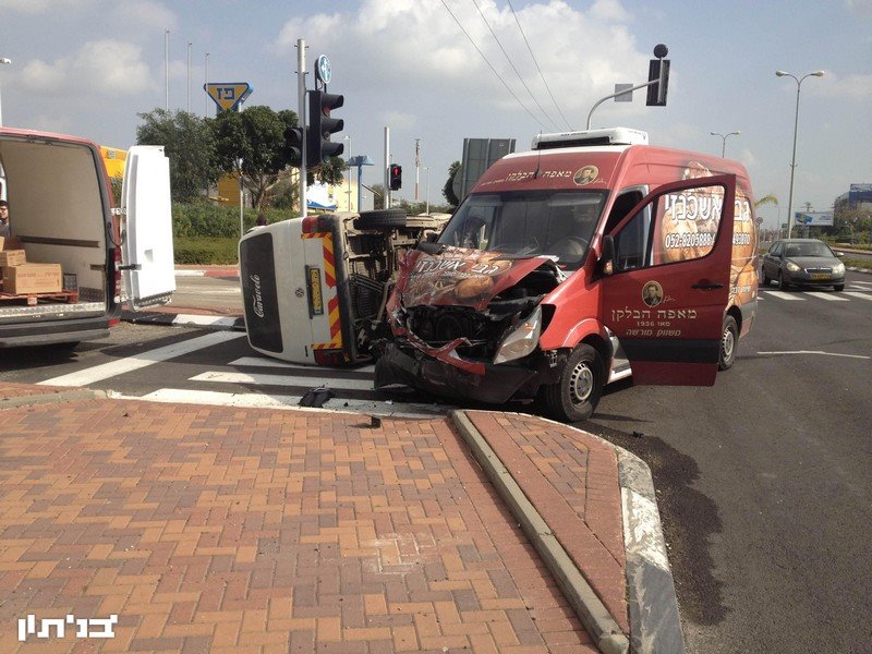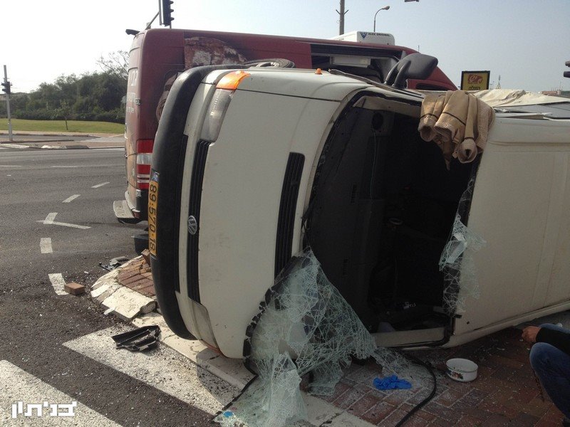 רק בנס תאונת הדרכים הזו, בדרך הסנהדרין ביבנה, הסתיימה ללא נפגעים בנפש