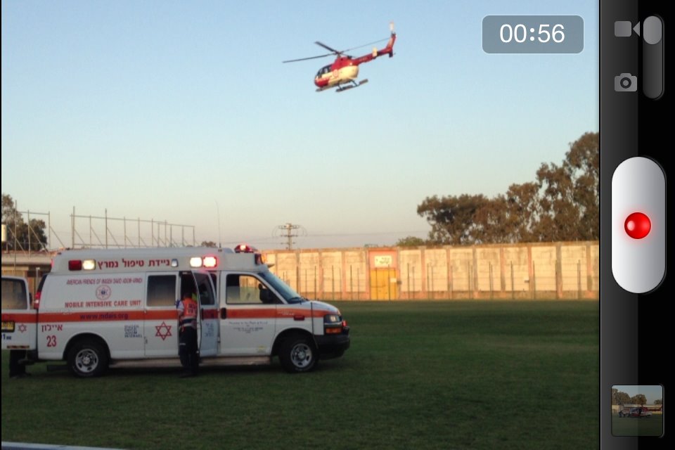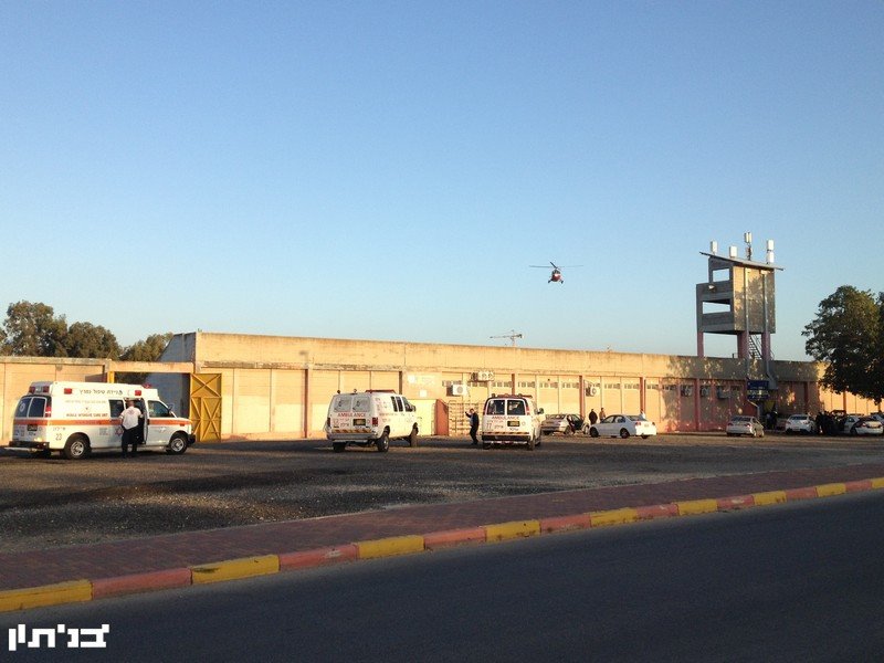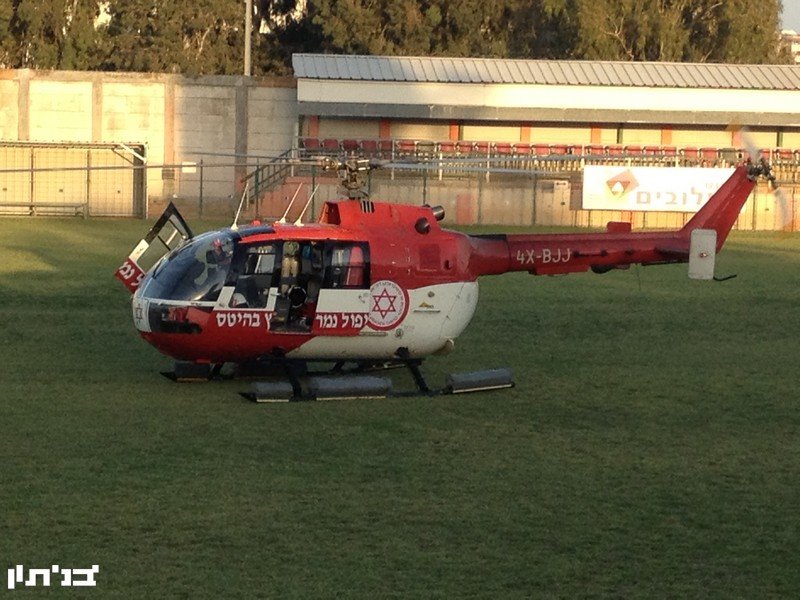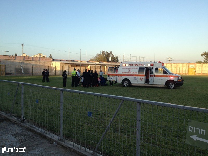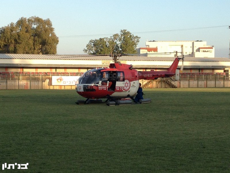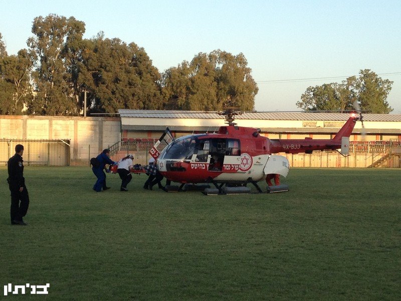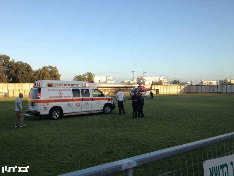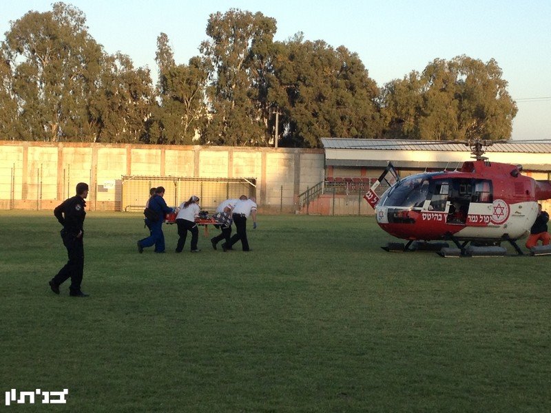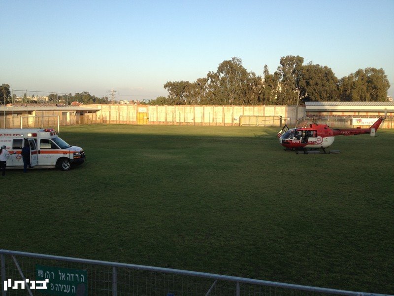 ניידות מיבנה וצוות מד"א פינו את הפצוע לאצטדיון העירוני כדי שהמסוק יוכל לנחות ברחבת הדשא לפינוי מהיר ובטיחותי.