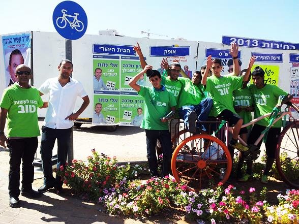 ביום שישי שעבר כבשו צעירי "הבית היהודי" את צומת בנק לאומי בעיר וצבעו אותו בירוק הזוהר של השלטים, החולצות והסרטים. צעירי המפלגה חילקו פלאיירים וסרטים ירוקים לנהגים שעצרו בצומת ולעוברים ושבים.