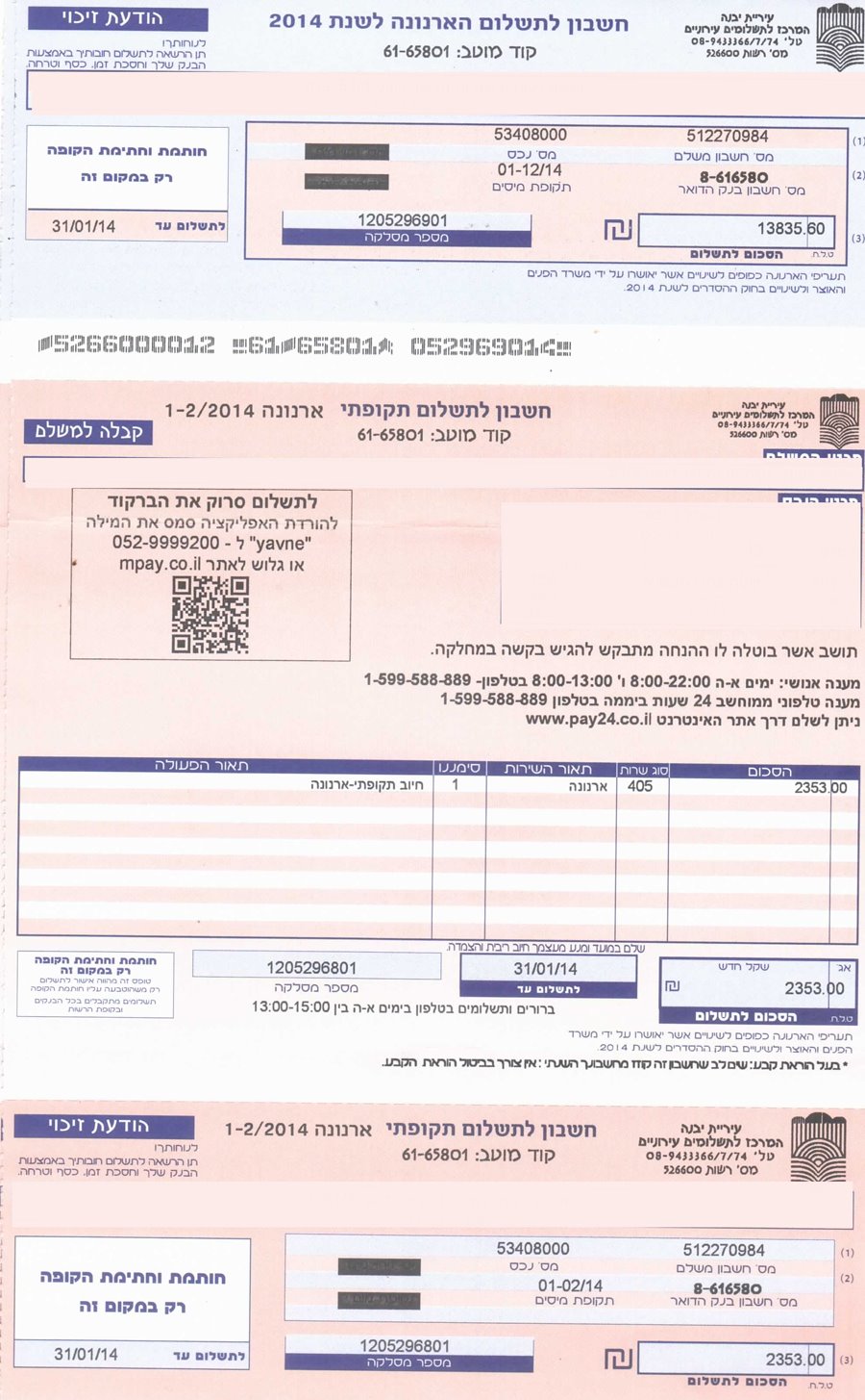 החל מחודש ינואר השנה כל הוראות הקבע לתשלום הארנונה, הן דרך הבנק והן דרך חברת האשראי, מפוצלות לשני תשלומים, זאת בעקבות בקשת תושבים להקל על-אופן התשלום ולהופכו לתשלום המתבצע אחת לחודש (במקום דו-חודשי). בכל חודש יחויב בעל הוראת הקבע בחצי מהסכום לתשלום במקום אחת לחודשיים. השינוי הוצג ע"י ראש העיר, צבי גוב-ארי ואושר פה אחד בישיבת מועצת העיר שנערכה בחודש יולי 2013.