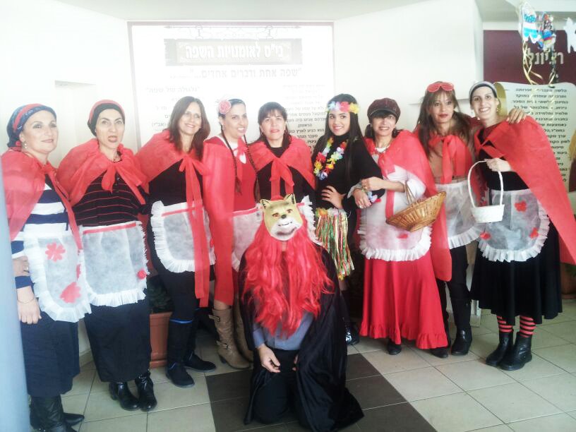 כבית ספר לאומנויות השפה, בבית הספר אביר יעקב גם בפורים נשארו נאמנים לייחודיות. כל צוות מורות ביה"ס התחפשו לכיפה אדומה, מנהל בית הספר התחפש לזאב, סגן המנהל התחפש לצייד ומורה למדעים לסבתא.
