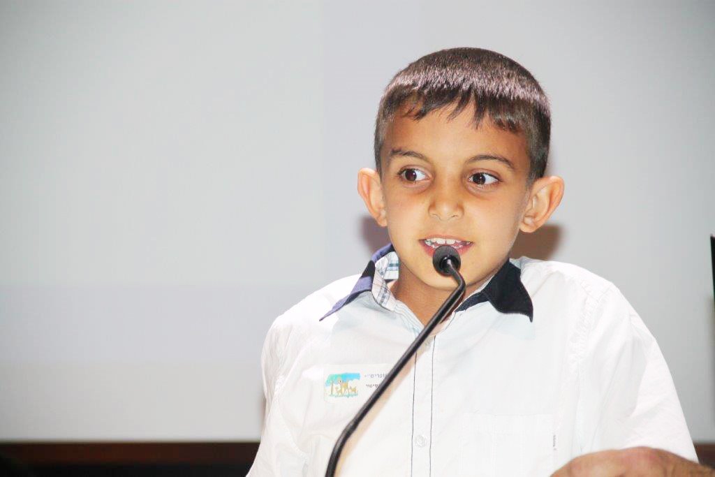אסף בלקר-ברדה בן ה-11 מבית הספר "אביר יעקב", נשא דבר תורה בפני 500 איש במוזאון "יצחק בן צבי" בירושלים