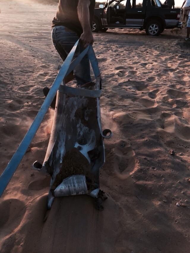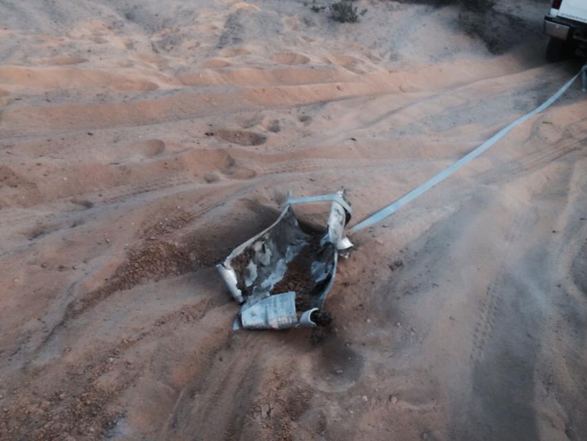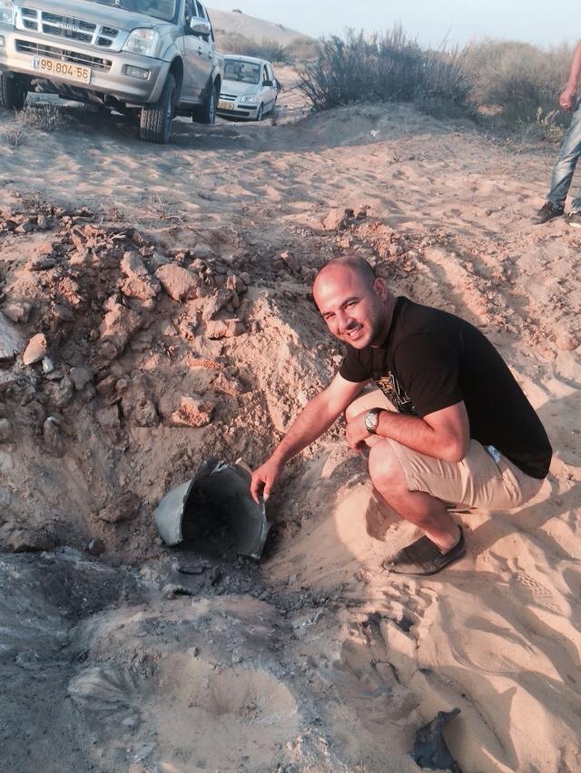מטח נוסף של גראדים נורה לעבר יישובי האזור. אחת הרקטות נפלה בשטח פתוח בסמוך מאד לעיר. תושבים שהגיעו למקום עם רכבי שטח גילו את נפל הרקטה, חילצו אותה והעבירו לכוחות הביטחון. צילום: אלמוג עבודות עפר