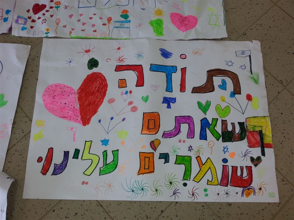 בכיתות שוחחו התלמידים על הנושא כאשר כל ילד כתב מכתב לאיש כוחות הביטחון. המכתבים, יחד עם כמויות עצומות של דברי מתיקה וביגוד חם שתרמו ההורים, ייארזו לחבילות ויישלחו לחיילים ולשוטרים המוצבים במוקדי העימות. חלק מהחבילות נשלחות בשיתוף פעולה עם גלי סיוון, אם לחייל מג"ב המשרת בחברון.