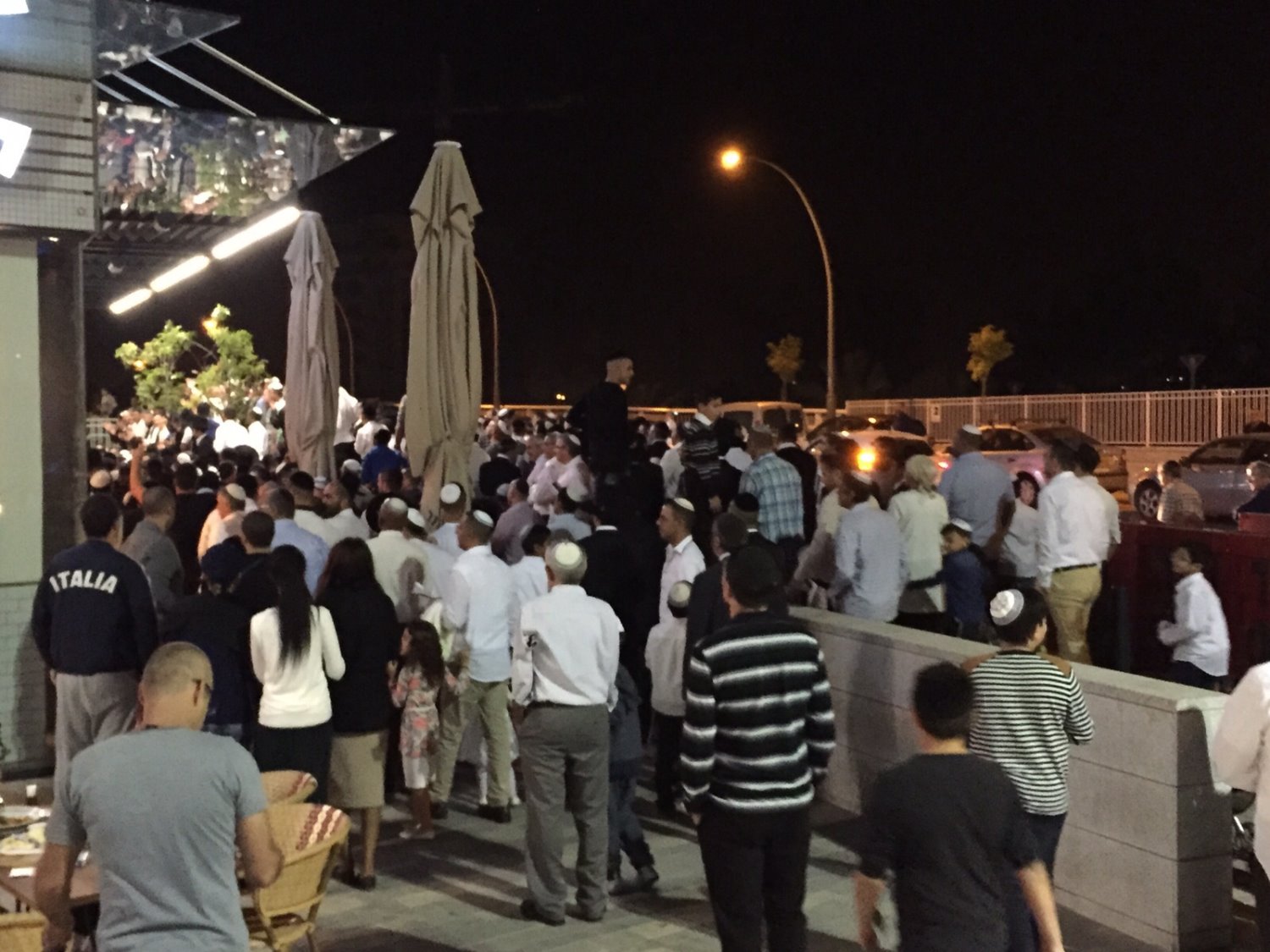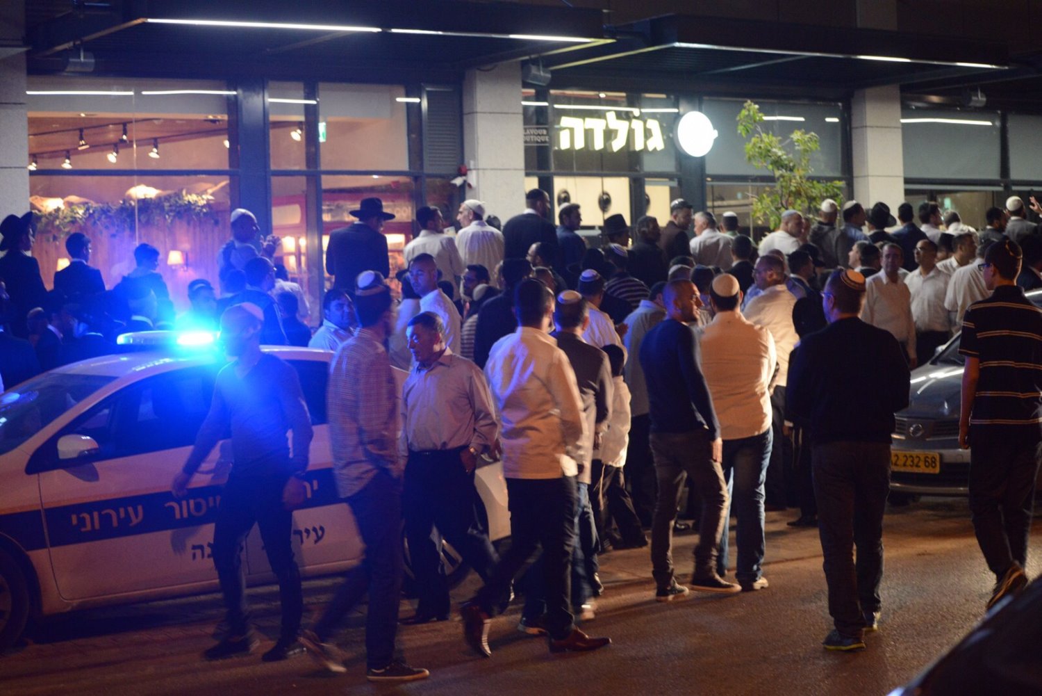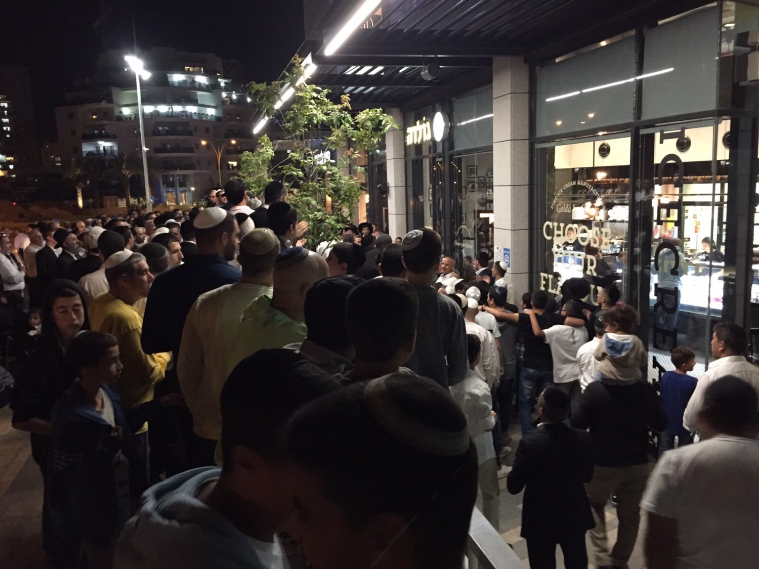 למעלה משלוש מאות אנשים הגיעו לקניון רוגובין ושרים לכבוד השבת. במקום לא נרשמו הפרות סדר. צילום: חסדאי כהן