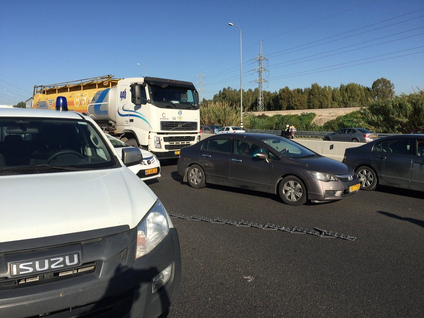 ראשוני: דוקרנים וניידות משטרה במחלף יבנה