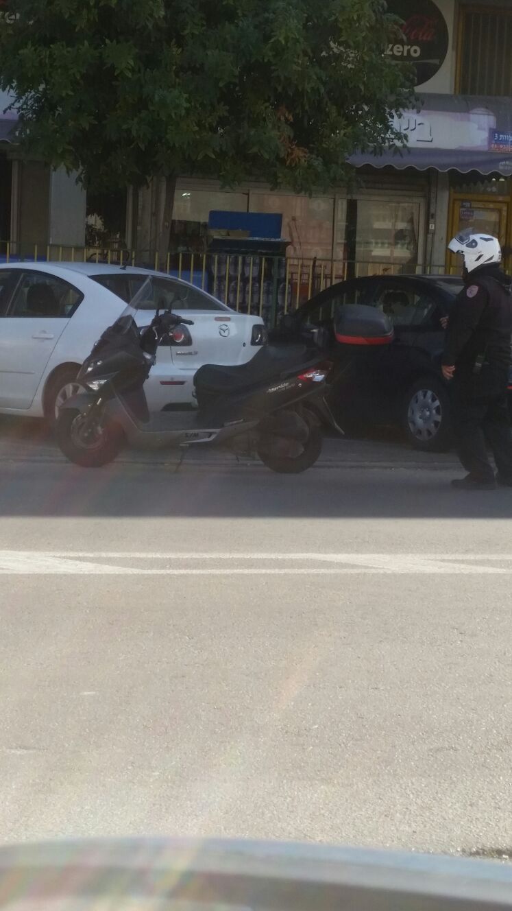 כעבור כמה שעות, נשלחו אלינו שתי תמונות נוספות, האחת, ניידת של השיטור העירוני חונה על מדרכה באדום לבן ביבנה, בתמונה השניה ניתן לראות אופנוע של הפיקוח העירוני שחוסם רכבים חונים ומחלק דו"חות.