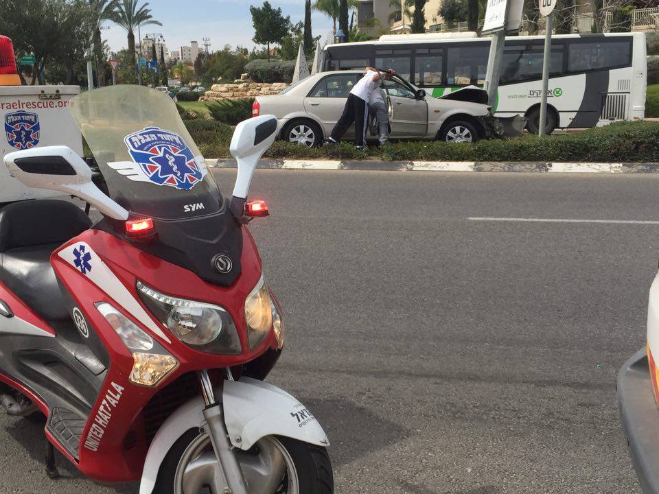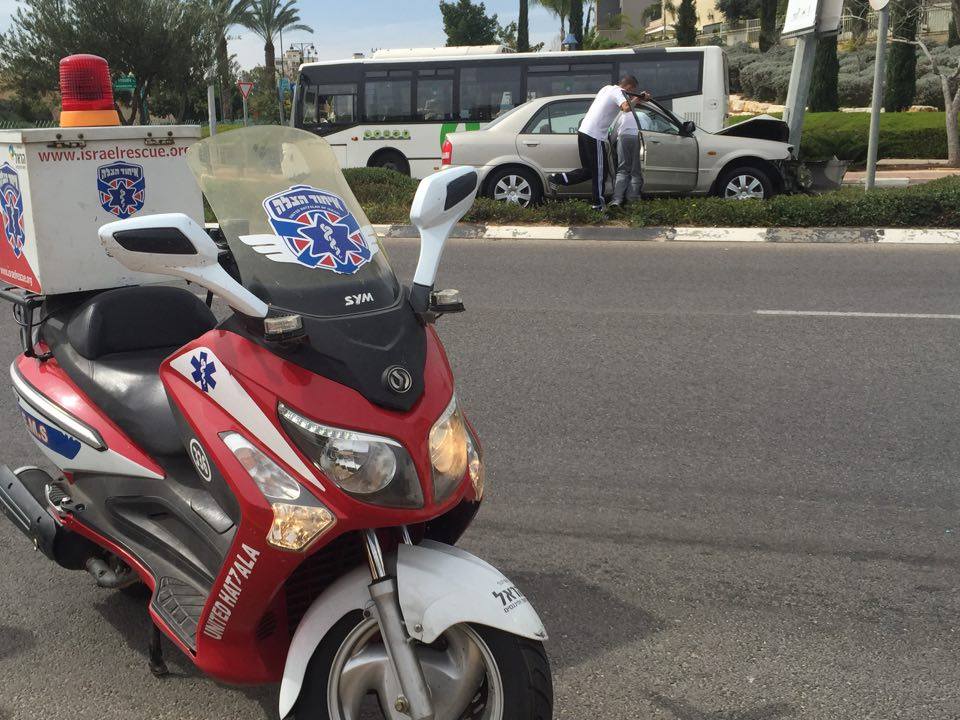 לפני דקות אחדות התקבלה קריאה אודות תאונת דרכים בצומת הרחובות הסנהדרין וז'בוטינסקי בעיר. כונני החירום שהגיעו למקום מצאו רכב פרטי שעלה על אי התנוענ והתנגש בעוצמה בעמוד תאורה. למרבה המזל אף אחד מנוסעי הרכב לא נפגע באופן רציני וכולם יצאו ממנו בכוחות עצמם.