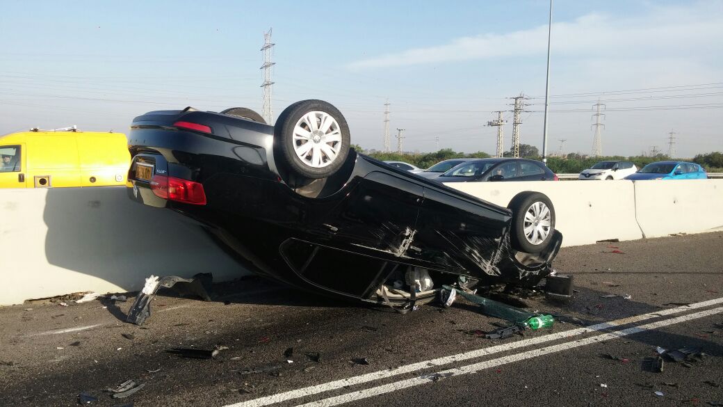 3 פצועים בהתהפכות רכב במחלף יבנה