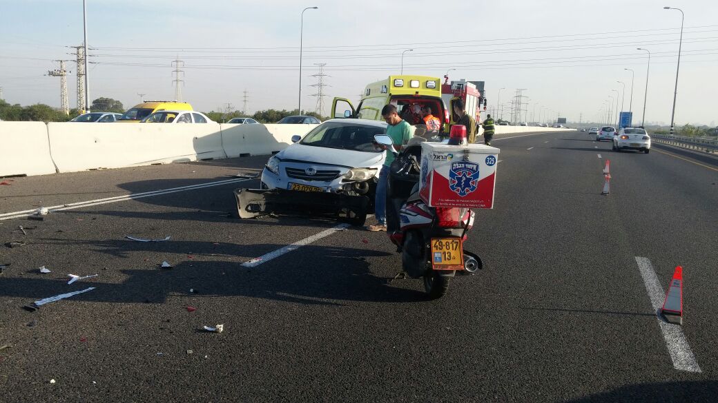 שלושה פצועים קל בתאונת דרכים במחלף יבנה. עומסי תנועה כבדים לכל הכיוונים. צילום: כונן "איחוד הצלה" אשר מלכה