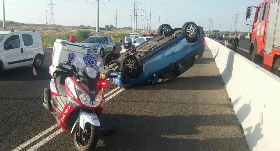שני פצועים בהתהפכות רכב בסמוך למחלף יבנה