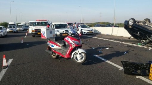 10 פצועים בתאונה במחלף יבנה. הכביש חסום
