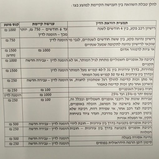 לצפיה בכל הקנסות החדשים שאושרו היום - לחצו כאן