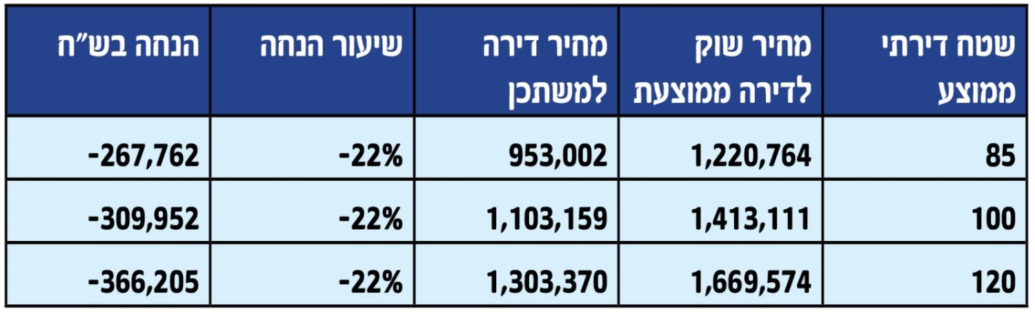דירת 85 מ"ר במחיר התחלתי של 953 אלף שקל. דירת 100 מ"ר במחיר התחלתי של 1.1 מיליון שקל. דירת 120 מ"ר במחיר התחלתי של 1.3 מיליון שקל. ממשרד האוצר הוסיפו כי כלל הדירות במפרט מחיר למשתכן הכולל, מרפסת חניה ומחסן ומחירן מבטא הנחה של 22% ממחיר השוק.