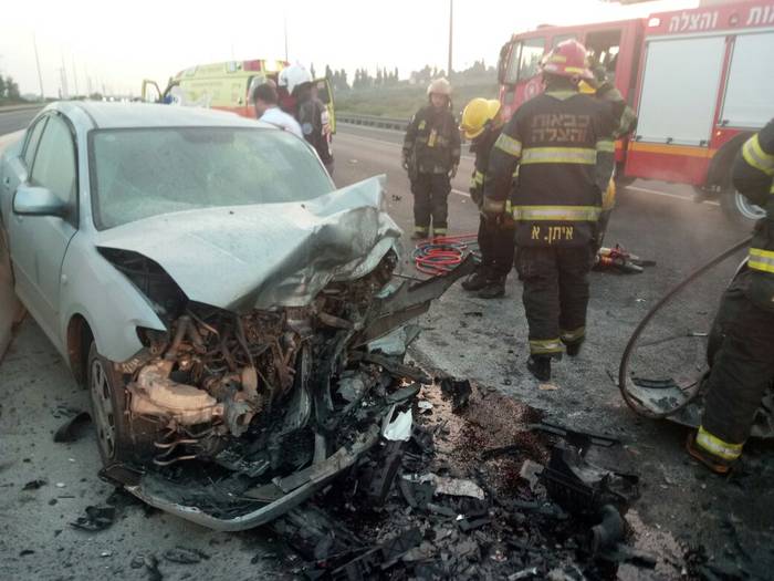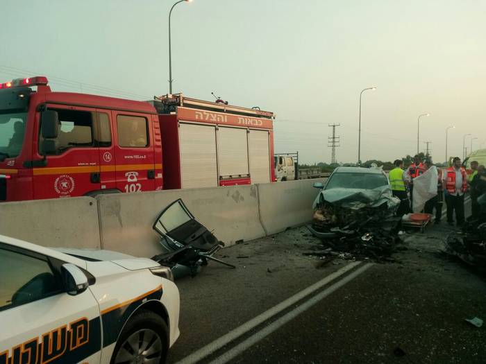 תושב יבנה כבן 45 נהרג הבוקר בתאונת דרכים קשה בצומת בית עובד לאחר שנהג ברכב שהיה מעורב בתאונה חזיתית. צילום: דוד שמח