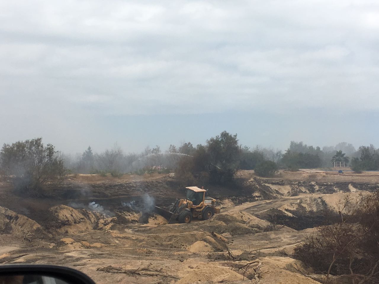 שריפת הקוצים שפרצה בצהרי יום שלישי בבריכות החמצון הישנות של אשדוד כבר מזמן עברה לבערה תת קרקעית מה שמקשה על מאמצי הכיבוי. הלילה היו אלה בעיקר תושבי חבל יבנה, בני דרום וגן יבנה שסבלו מזיהום אוויר חריג, למרות שהריחות והעשן עדיין מטרידים גם רבים מתושבי יבנה.
