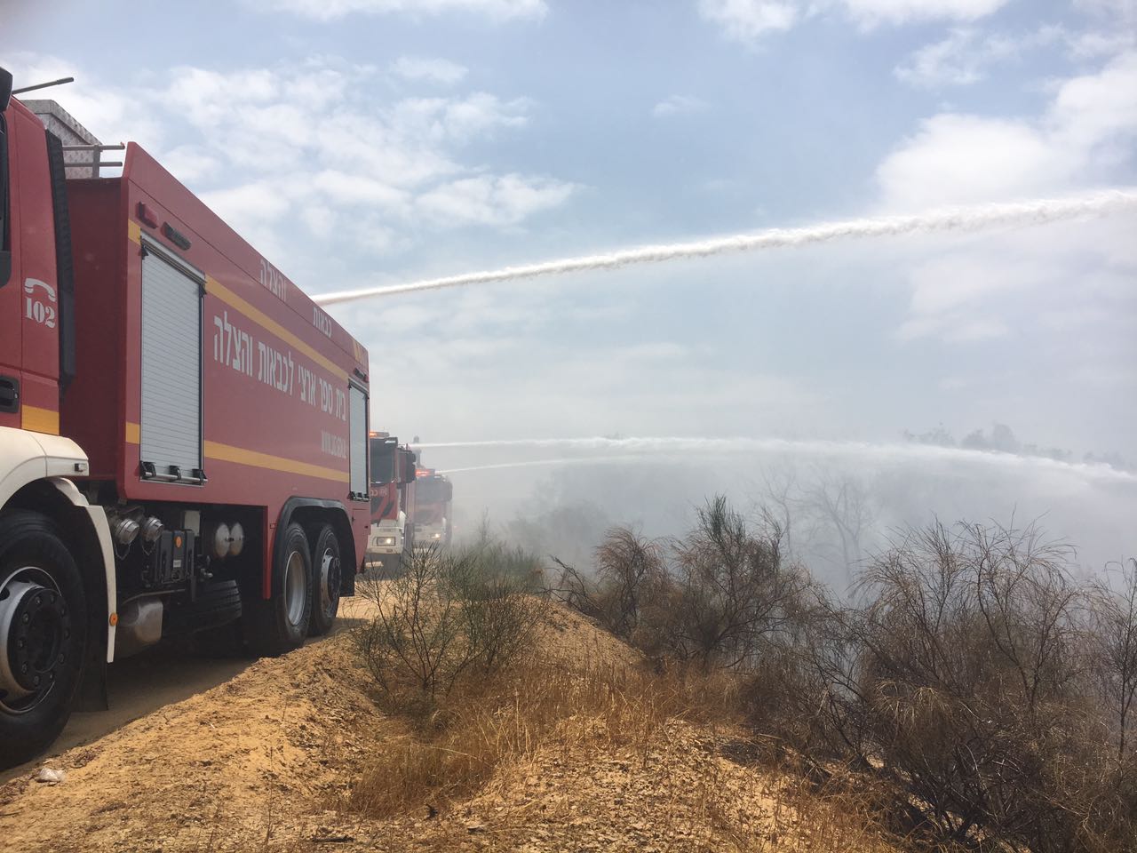 בשעות האחרונות תוגברו משמעותית מאמצי הכיבוי, ובנוסף לכבאיות רבות של לוחמי האש, פועלים במקום גם טרקטורים רבים וגולת הכותרת היא צינור מיוחד שהובא למקום, המזרים מי קולחין (לאחר שעברו טיהור) בקצב של 700 קוב לשעה. הצינור הכחול, בקוטר של 8 צול, פרוש לאורך מאות מטרים ומזרים מים ללא הפסקה לתוך הבריכות המעשנות, תוך מטרה שהמים יחלחלו אט אט ויחנקו את הבערה התת קרקעית.