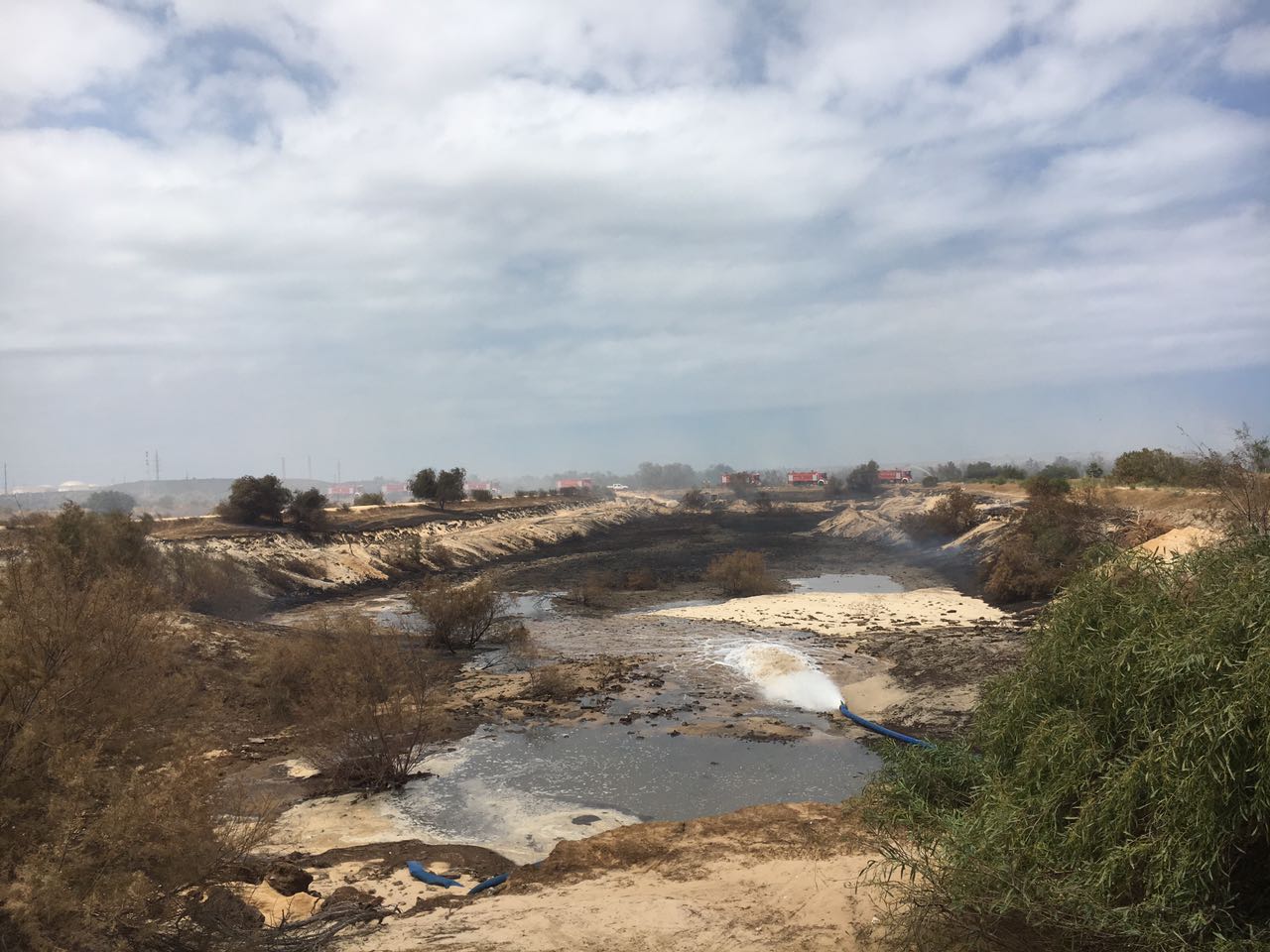 ארבעה ימים שצוותי כיבוי גדולים עמלים על כיבוי הבעירה התת קרקעית של בריכות החמצון באשדוד, בעירה שפוגעת קשות באיכות החיים של תושבי יבנה, אשדוד והסביבה. צפו בתיעוד מהשטח. צילום: שמואל דוד