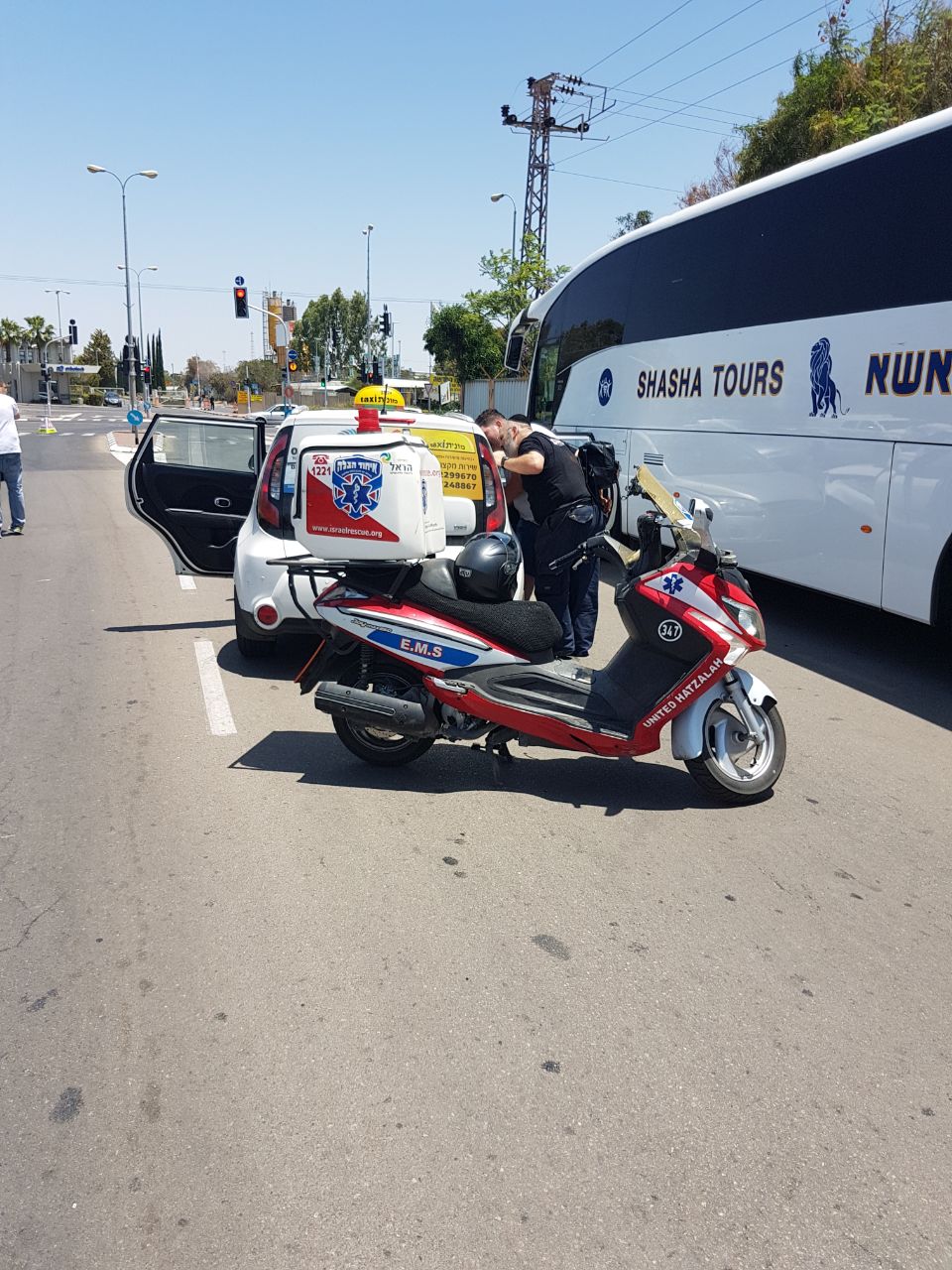 מתנדבי רפואת חירום של איחוד הצלה שהגיעו למקום העניקו סיוע רפואי ראשוני לנפגע 1 קל בינוני ועוד 3 נפגעים כשמצבם מוגדר קל. הם פונו ע"י אמבולנסים של מד"א להמשך טיפול בביה"ח קפלן.