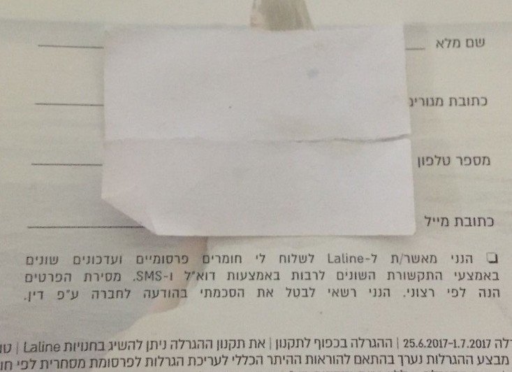 מכירים את זה שאתם מקבלים אפשרות כלשהי לסמן כי אתם מוכנים לקבל חומר פרסומי כזה או אחר של חברה מסוימת? ככל הנראה, ברוב הפעמים תסמנו שלא – ופשוט לא תקבלו חומר שכזה. אבל ללקוחה שהגיעה ל-ללין ביבנה – זה היה קצת יותר מסובך.