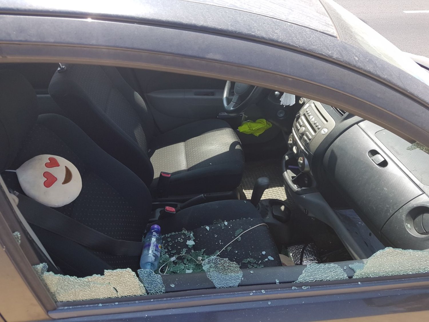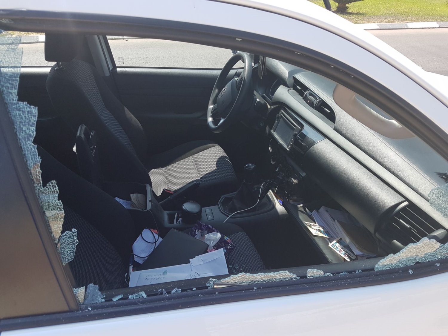 בשלושת הרכבים שחנו בחנית הבית נופצו שמשות הרכב. המנפצים לא הסתפקו בניפוץ הרכב הם נכנסו פנימה והפכו אותו, "הם כנראה חיפשו שלל", אומרת בעלת הרכב. "כשלא מצאו, הם עשו פוגרום ברכב של הבת שלי. הם מצאו שני זוגות משקפים ולקחו אותם". לגבי הרכב של השכן לא ידוע להם מה נילקח.