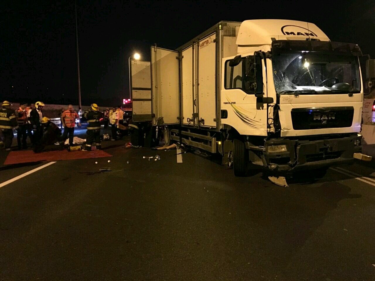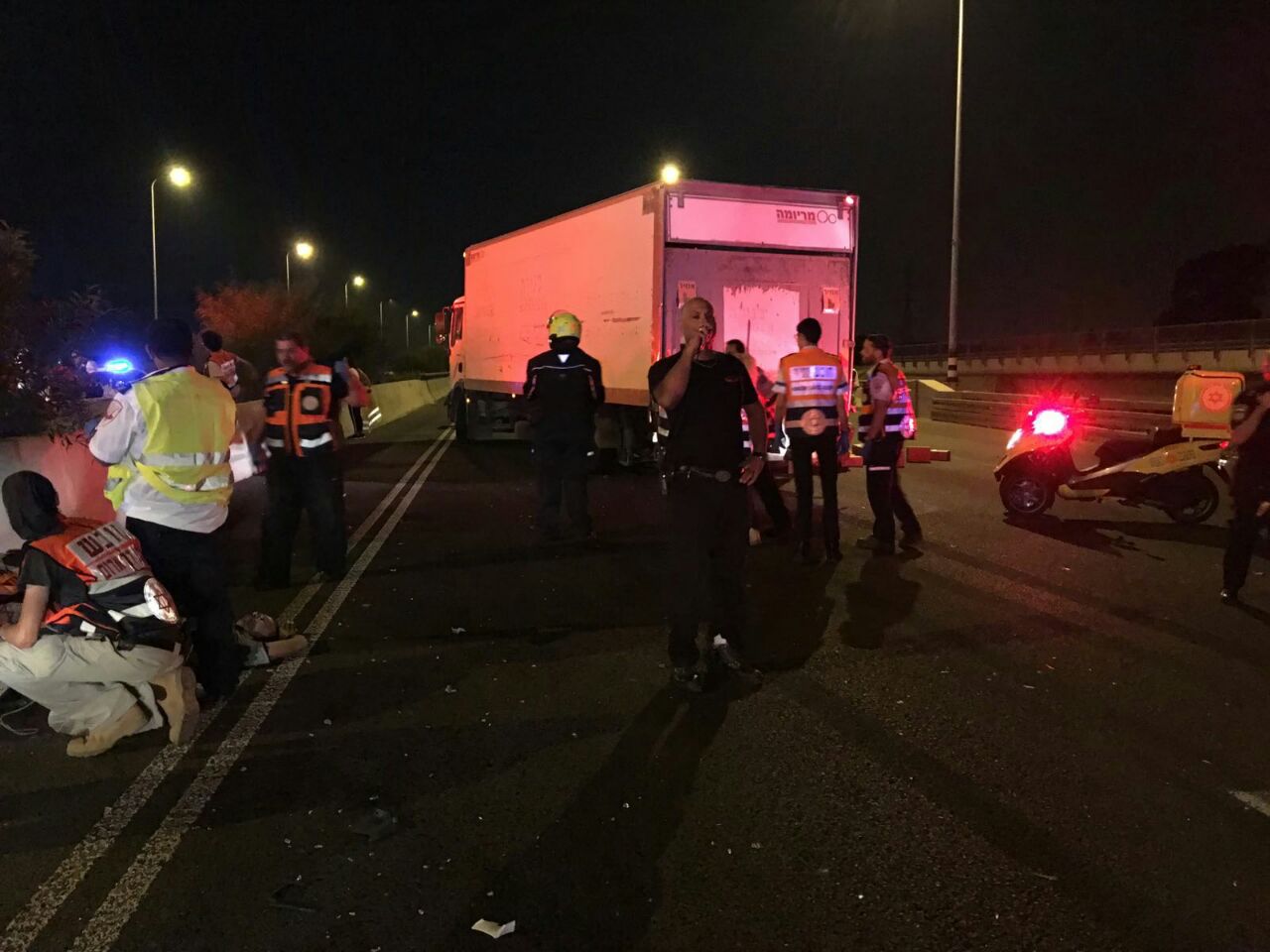 מחלף יבנה לצפון נסגר לתנועה לאחר תאונה קטלנית שבה משאות פגעה ב-5 הולכי רגל