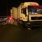 של כ 50 מטר עמדה משאית עם פגיעות מעיכה מקדימה, על הכביש שכבו 5 צעירים